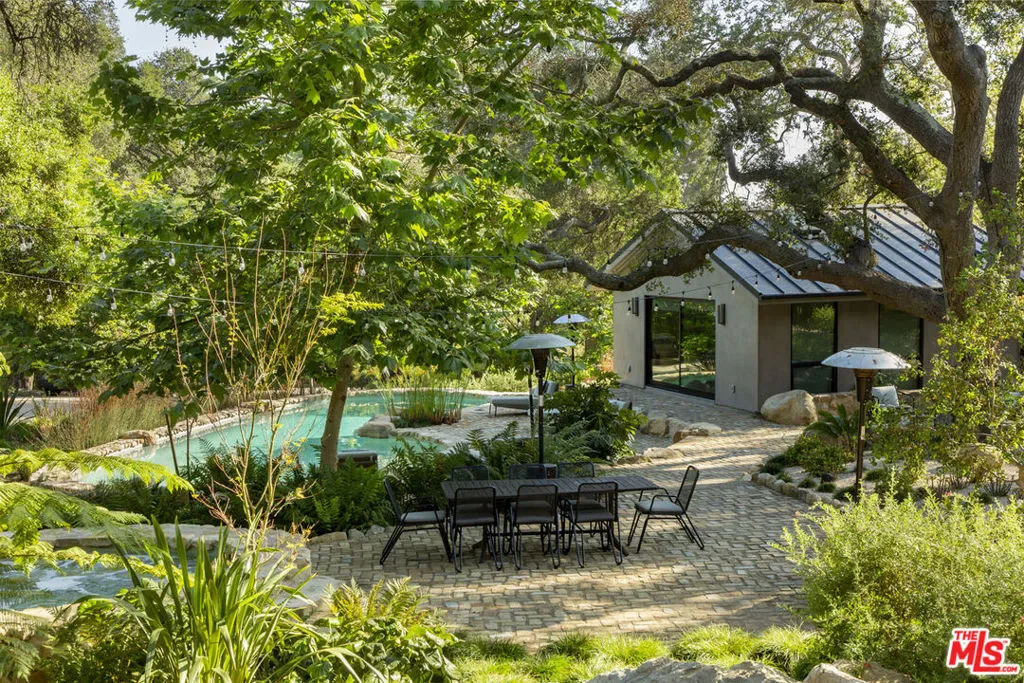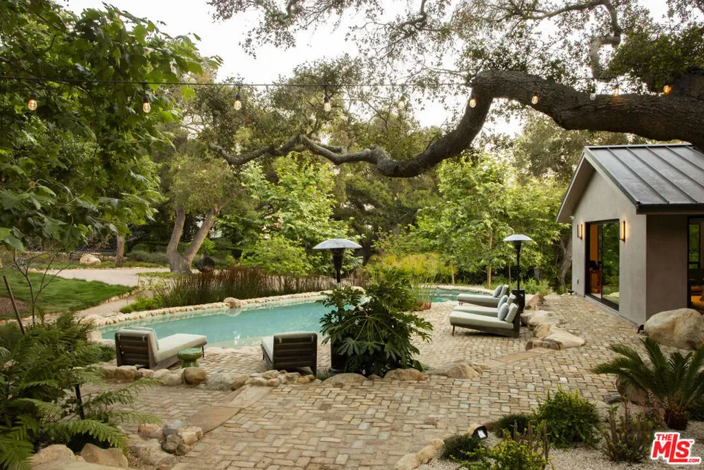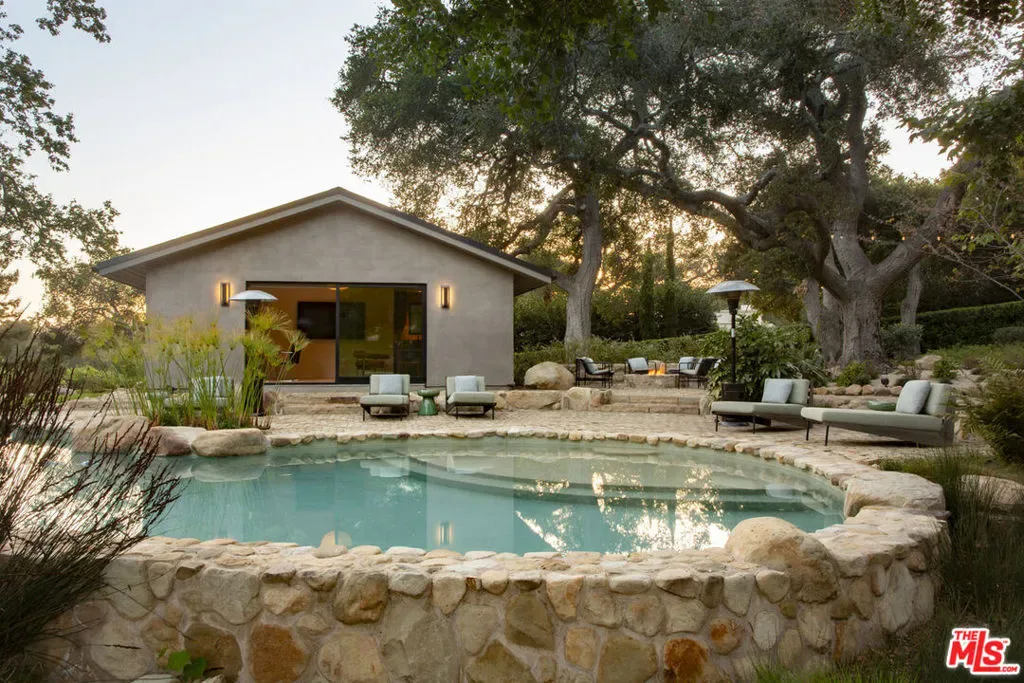 Thoughtfully renovated in 2022, this single-level Montecito compound blends high style and chic architectural design with the ease of California indoor-outdoor living. Set on 2.53 acres in the beloved Riven Rock neighborhood, the 4,873 sq ft main residence offers 5 beds and 4.5 baths, complemented by a 496 sq ft detached ADU. A dramatic great room anchored by a central fireplace brings together a sleek kitchen, gracious dining, and everyday living spaces, while a separate media room offers a more private retreat. Outdoors, the property unfolds with a pool, spa, fire pit, chef’s garden, fruit trees, and multiple areas for entertaining. A rare blend of design and comfort, grounded in the Montecito lifestyle. Just minutes from Montecito’s Upper Village, hiking trails, and beaches.