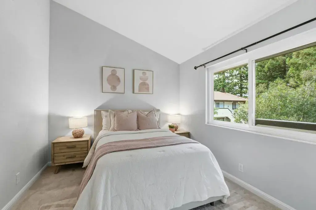 Updated top-floor corner condo nestled among redwoods in a quiet, resort-style community in a highly desirable Santa Clara location. This bright and airy home features vaulted ceilings, dual-pane windows, a cozy wood-burning fireplace, a spacious private balcony, and new in-unit washer and dryer. The kitchen is beautifully updated with quartz countertops, a garden window, stainless steel appliances, tile flooring, and a stylish backsplash. The HOA covers water and garbage, and maintains the pool, spa, clubhouse, roof, common areas, and earthquake insurance offering truly low-maintenance living. Ideally located just minutes from NVIDIA, Apple, major transit routes, shopping, schools, and freeways. Enjoy the perfect blend of tranquility and convenience. This is one you don’t want to miss!