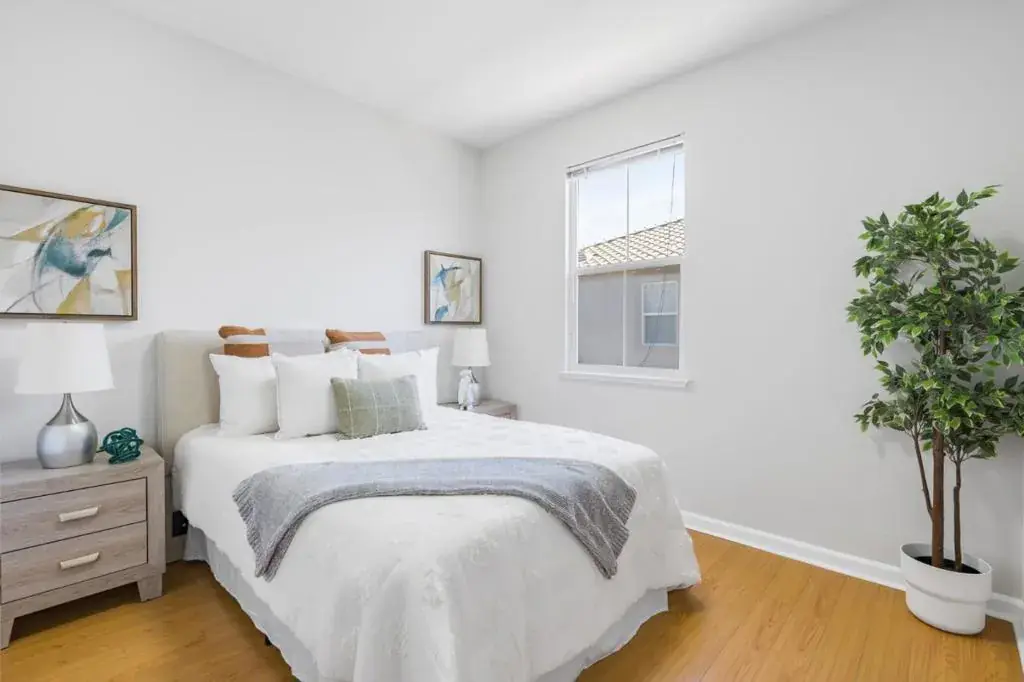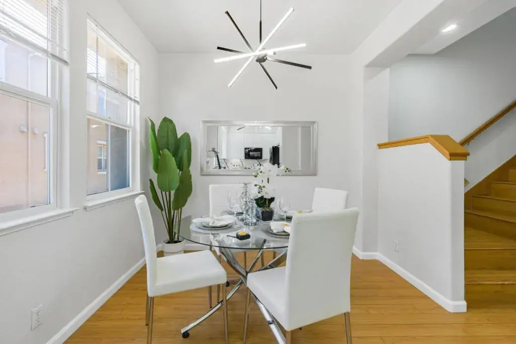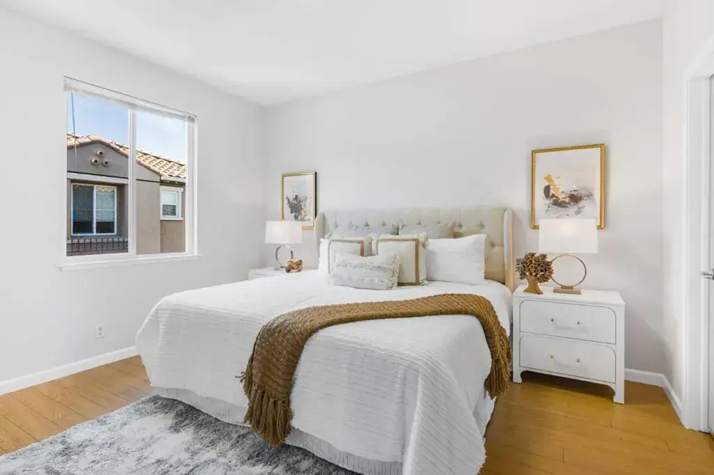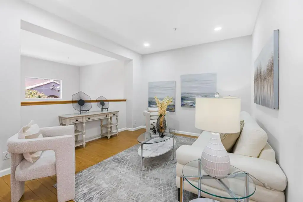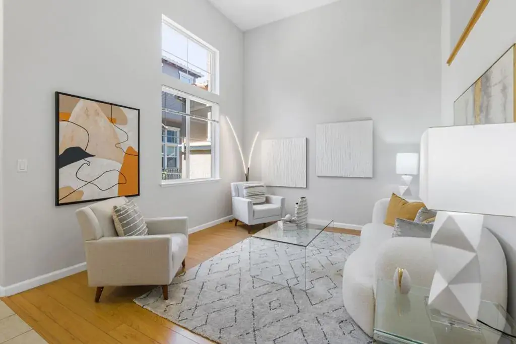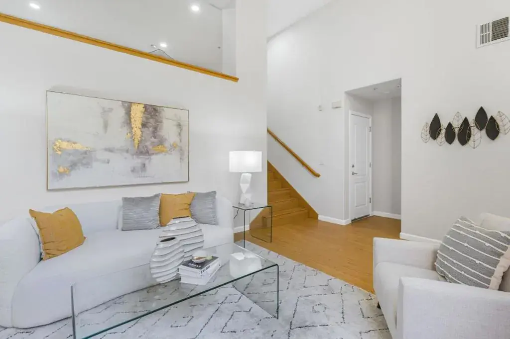 Welcome to this stunning 3 bedroom townhouse that features an open floor plan with a perfect blend of space, comfort, and contemporary lifestyle in Mission Garden gated community and with top rated Rivermark school. The formal living room features soaring 20-foot ceilings and tall windows with views of the front patio. Enjoy this open plan including a bright living area, a dining area, and updated kitchen with brand new quartz countertops, and freshly painted cabinetry. Upper level offers a generous master suite with walk-in closet, large, updated bathroom with dual sink vanity, soak-in tub and separate shower and new light fixtures. Brand new interior paint, double pane windows, recessed lights, laminate flooring, central heating and cooling & new light fixtures thru out. Laundry is located on the upper level for daily convenience, washer and dryer are included. Side by side 2 car garage with ample storage space. The home is conveniently located close to Rivermark Plaza, Levi’s Stadium, Oracle & many Hi-tech companies, Santa Clara Library, park, walking trail and top-rated Don Callejon School. Easy access to freeways and expressways. Don’t miss out on this move-in ready home in the heart of Silicon Valley! Enjoy the amenities like community pool and children’s play area.