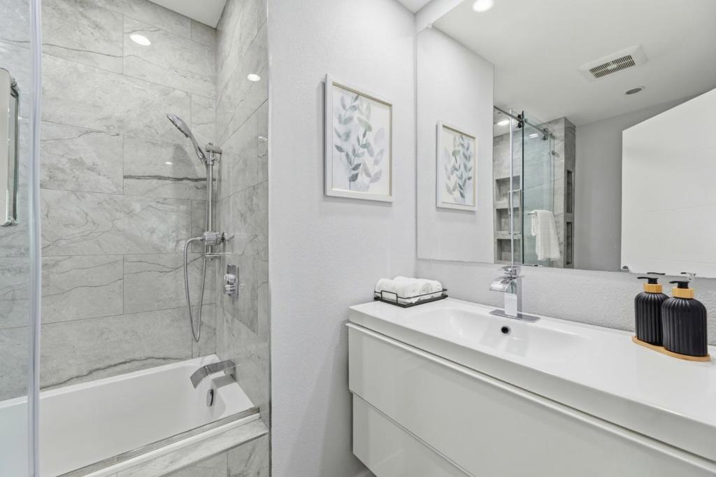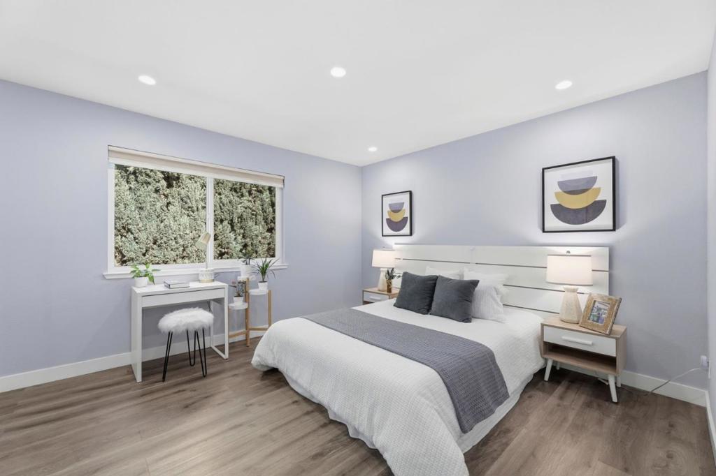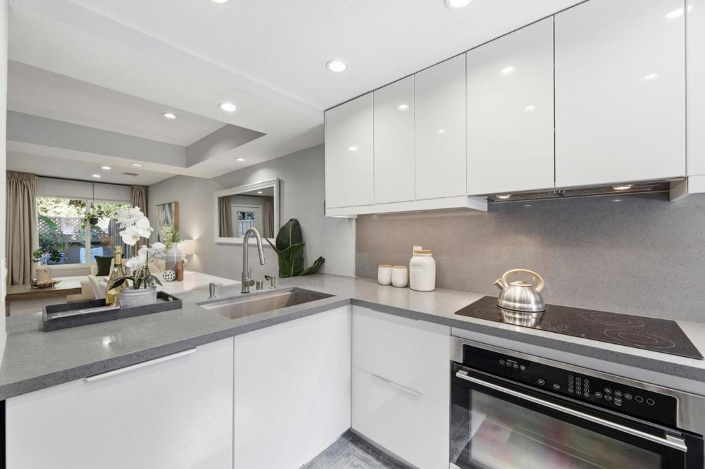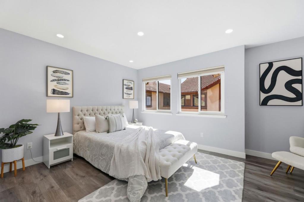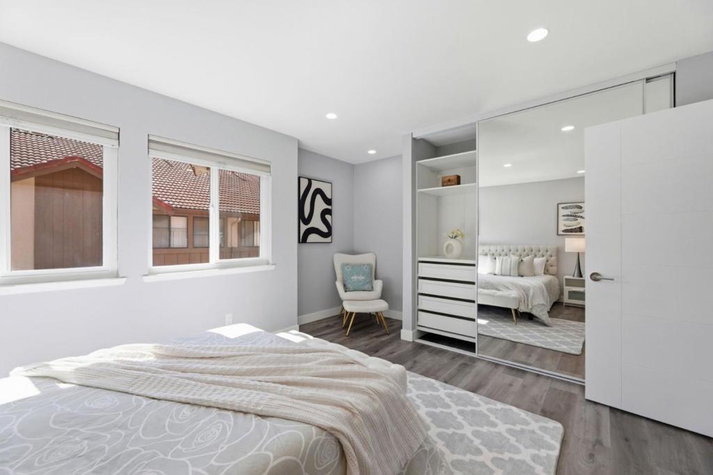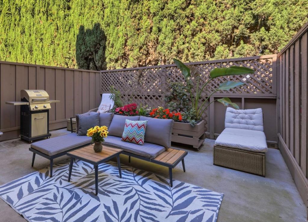Rare two spacious primary suites townhome with Private Green Backyard at this price point. Don’t miss out! Beautifully upgraded home offering 1,125 sq. ft. of well-designed living space in a quiet community location. The spacious living room features a newly added electric fireplace and flows into the dining area, creating an open and functional floor plan. Step outside to a private backyard surrounded by lush greenery perfect for relaxing. A powder room with in-unit washer/dryer adds convenience, while a smart mini office under the stairs provides a flexible work-from-home space. The kitchen showcases glossy modern cabinetry, quartz countertops, stainless appliances, and an exterior-vented exhaust. Upstairs, two spacious primary suites offer updated en-suite bathrooms, including a ceiling-mounted rain shower, along with upgraded closet systems. Additional features: recessed LED lighting, upgraded double-pane windows, a water softener, smart lock, thermostat, and motion-activated bathroom vent. 2 assigned underground parking spaces. Resort-style and gated community. Conveniently located near major tech employers, Costco, with close proximity to Caltrain and Santa Clara University. Top rated Middle and High School.