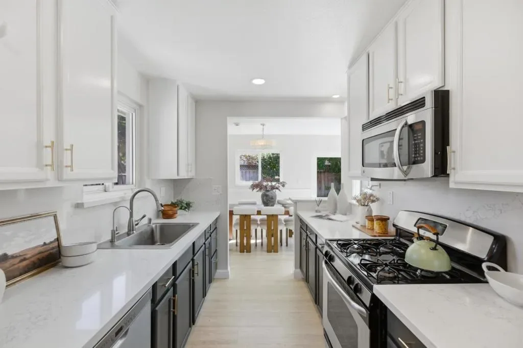 Charming and beautifully remodeled single-level ranch home on a picturesque tree-lined street in the heart of Santa Clara! This 3BD/2BA home features a bright, sun-filled living room with a wall of windows and a cozy fireplace, seamlessly connecting to the dining area with a modern chandelier. The updated kitchen offers stainless steel appliances and ample cabinetry, perfect for both everyday living and entertaining. The private primary suite is tucked at the rear of the home and includes a walk-in closet with built-in organizers, while two additional spacious bedrooms share a large hall bath. Thoughtful upgrades include high-efficiency central heating and A/C, Nest thermostat, whole-house water filtration system, Ring doorbell, and a finished garage with app-controlled opener. Enjoy a low-maintenance backyard designed for California living, complete with an outdoor kitchen, built-in BBQ, large patio, and serene water-wise garden. Ideally located just minutes from Nvidias new campus, Santa Clara University, Santana Row, Valley Fair, Santa Clara Square, and major commute routes including San Tomas Expressway and Highway 101. MUST SEE!