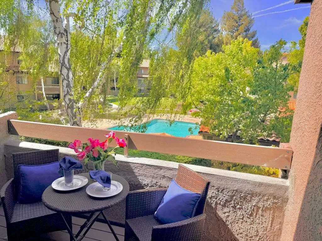 Overlooking the sparkling swimming pool, and red Spanish tile roofs in the community, this is one of the best locations in Coronado Vilas. This upper level 2-bed, 2-bath corner home comes with a private entry. Enjoy a picnic lunch on the deck on a warm California day, or retreat inside to spend time with family and friends. Enjoy both technology and convenience. Enhanced as a smart home, you can control functionality with your cell phone. Remodeled kitchen and bathrooms. Upgraded bathroom heated fans. Cozy carpet in the living areas, and convenient tile in the kitchen and bathrooms. Ample storage with two closets in the primary suite, coat closet, guest bedroom closet, and storage off deck. Reserved underground parking space and additional parking behind the building. Coronado Villas is a private, gated community in a park-like setting, with lush trees and flowers. Amenities include the swimming pool, spas, fitness center, BBQ area, car wash area, and playground. Located in the heart of Silicon Valley, near 101, 880, high tech employers, Santa Clara Town Centre (Target), Santana Row, bike trails, and Levi’s Stadium.
