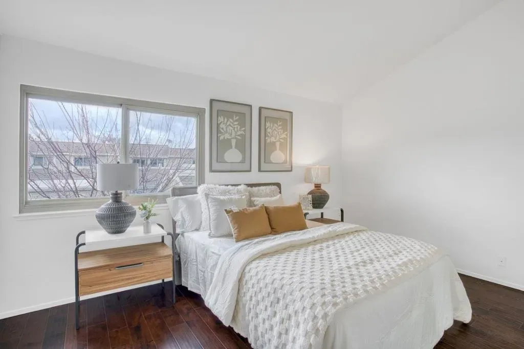 Welcome to this beautifully updated 2-bedroom, 1.5-bath townhome in the heart of Santa Clara. Move-in ready with bright, open living spaces, this home features an open-concept layout, a modern kitchen with quartz countertops, updated cabinetry, custom tile backsplash and a private backyard perfect for relaxing. Both bedrooms are generously sized, with the primary bedroom featuring vaulted ceilings for an airy feel. Enjoy indoor-outdoor living with a backyard directly off the kitchen, complete with a mature apricot tree that produces abundant, sweet fruit each year. A side-by-side two-car garage offers exceptional convenience and storage. Located in a well-maintained community with pool, clubhouse, and mature landscaping, and close to Highways 101, 237, and 880, Costco, Whole Foods, Levis Stadium, and major tech employers including Oracle, Intel, and NVIDIA.