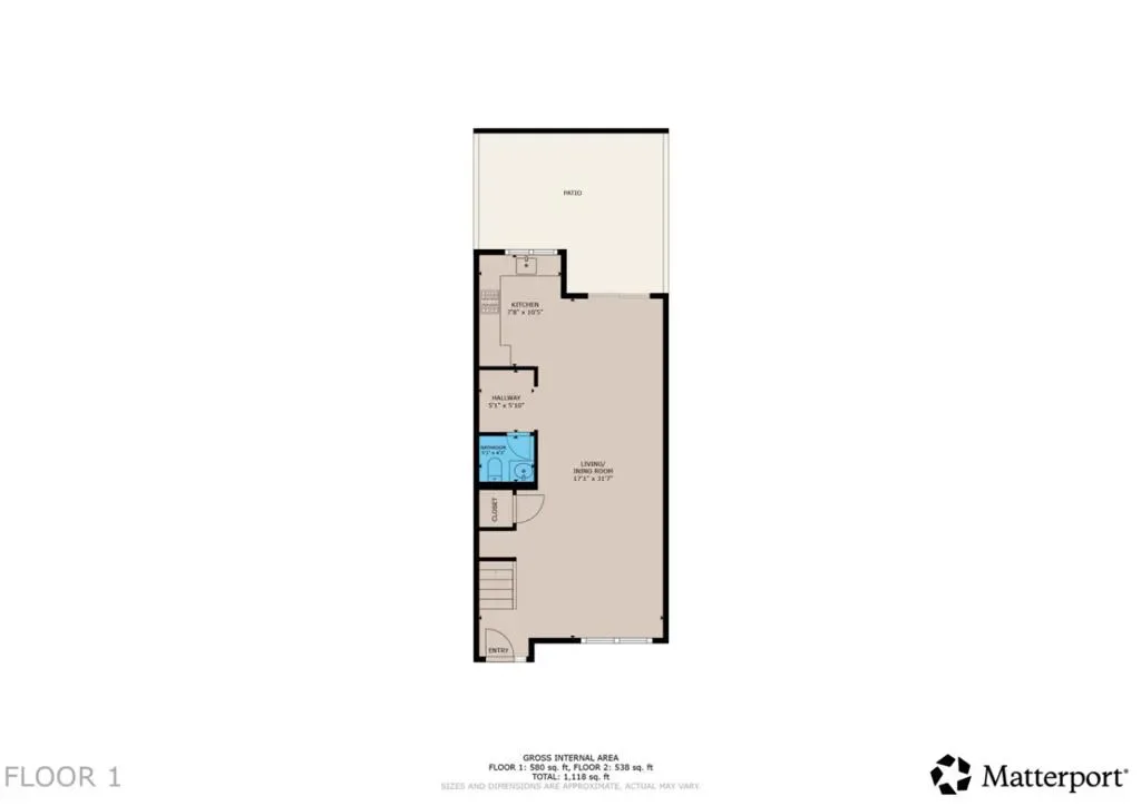 1 Full Bathroom, 1 Half Bathroom