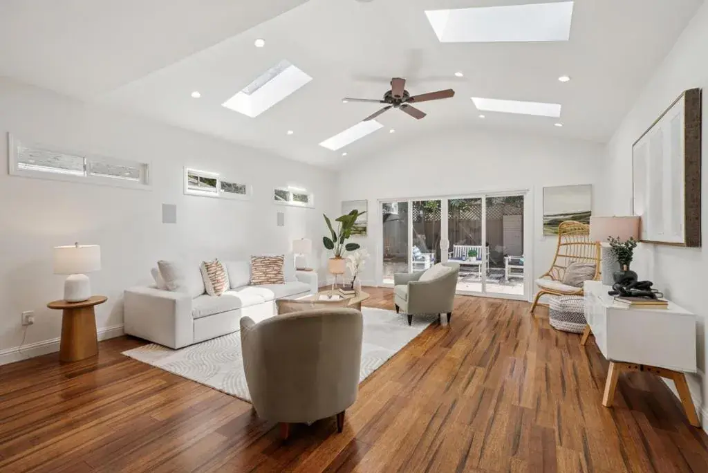 Welcome to 2530 Forbes Drive, a beautifully updated 3-bedroom, 2-bathroom home in Santa Clara. Featuring 1,648 sq ft of living space on a 6,440 sq ft lot, this property offers modern comfort and style with fresh interior paint, luxury vinyl plank flooring, recessed lighting, and a Nest thermostat. Gourmet kitchen boasts S/S appliances: Bosch gas stove, Whirlpool French door refrigerator, GE microwave, granite countertops, designer backsplash, double sink, and built-in wine rack. The spacious living area offers a modern tiled fireplace, while the extra-large family room is highlighted by vaulted ceilings, skylights, overhead fan, Doors leading to the yard, and abundant natural light. The primary suite includes a sleek bathroom with a tiled shower stall, vanity with bowl sink, and modern finishes. The updated hall bathroom features a modern vanity, tile flooring, and a tiled shower over tub. Additional bedrooms include recessed lights, overhead fans, and blinds. Outdoor living is made easy with a paved patio and low-maintenance AstroTurf yard, plus Space for Potential ADU. Conveniently located near major highways, parks, shopping, dining, Santa Clara University, and top employers like Apple and Nvidia, this move-in ready home combines comfort, style, and prime Silicon Valley living