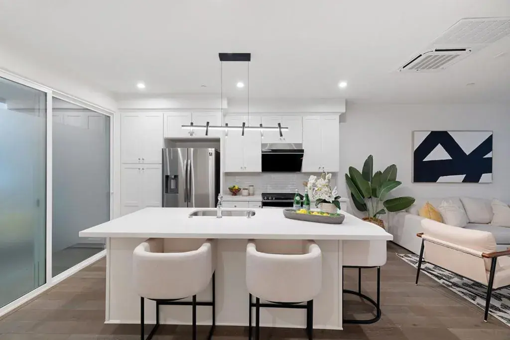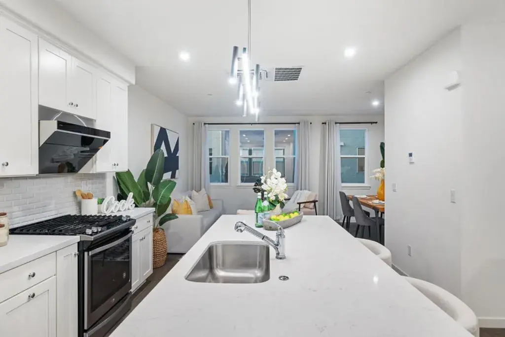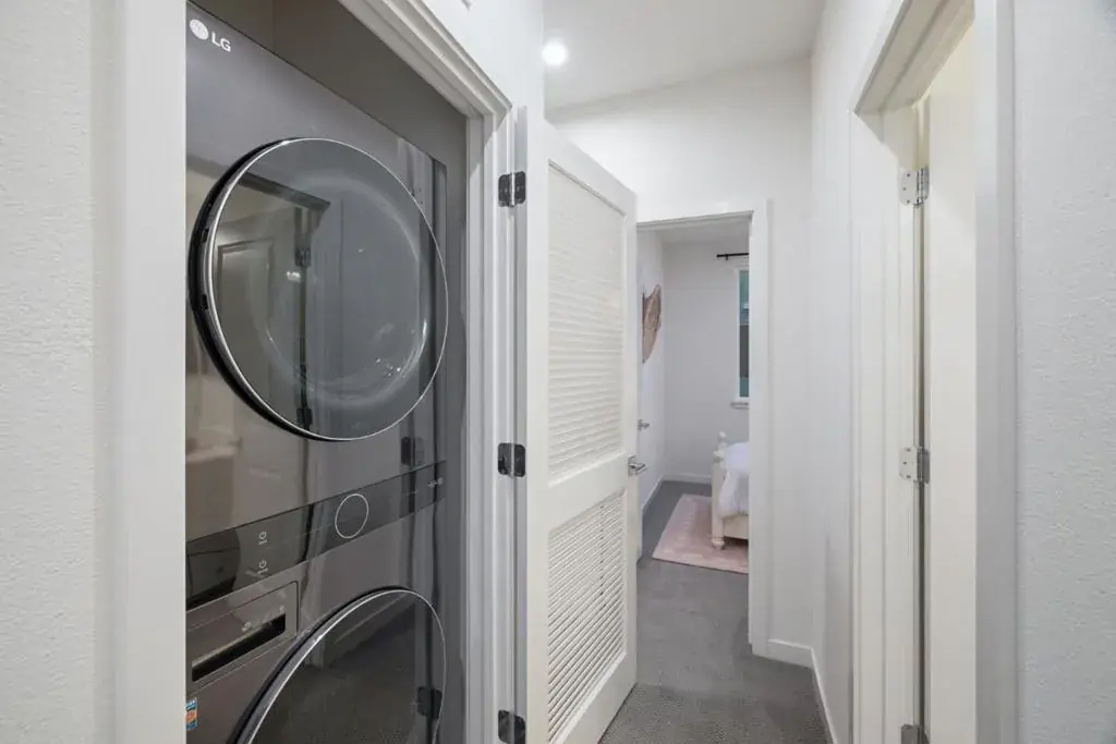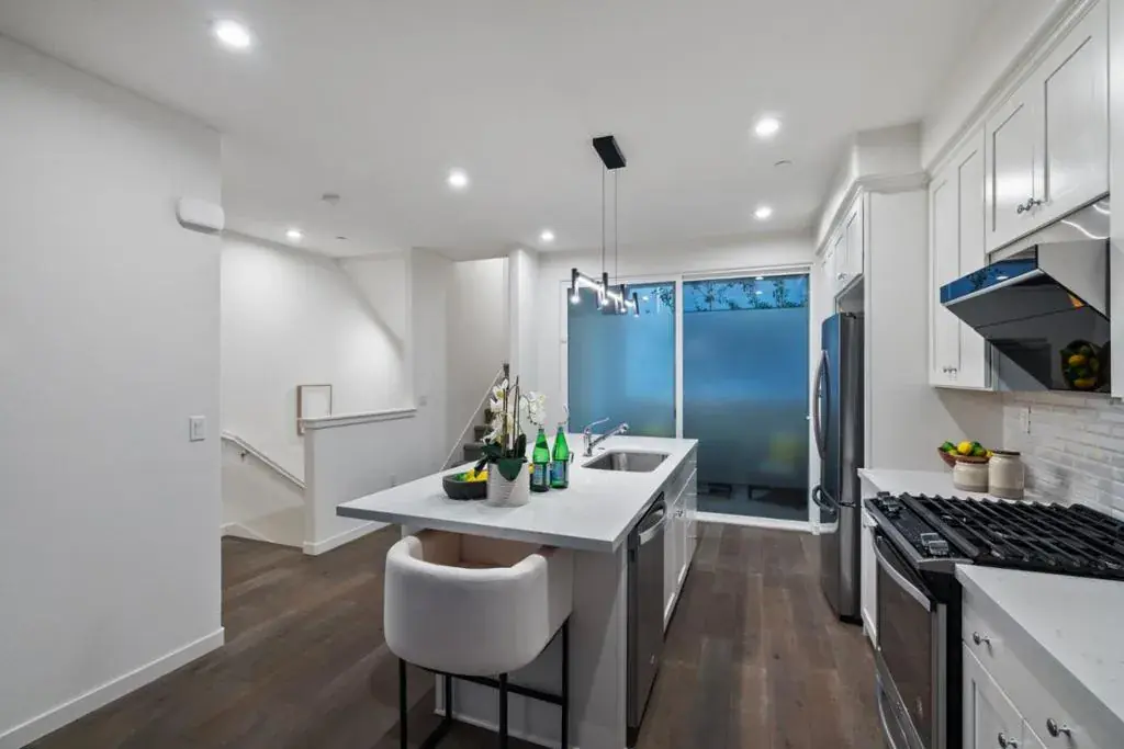 Welcome to One Lawrence Station, Toll Brothers premier townhome community in the heart of Santa Clara, where modern design meets seamless indoor-outdoor living. Built in 2021, this spacious 1940 sqft home is perfectly positioned in the center of the community on a quiet, private lane, offers a thoughtfully designed layout across four levels. The ground floor includes a convenient built-in study and powder room, along with a two-car attached garage. The second floor features an open-concept kitchen, dining, and living area that flows onto a large private balcony perfect for entertaining. Upstairs on the third level, you’ll find the luxurious primary suite, two additional bedrooms with a shared bath, and a laundry area. The top floor is a retreat of its own, boasting a family room, bedroom with full bath, and an expansive outdoor patio for friends gathering and a breath of fresh air. Upgrades abound: quartz countertops, shaker-style white cabinetry, stainless steel appliances, Fotile kitchen hood, LED recessed lighting, and a water purification system. Prime location near major tech campuses, shopping, dining, and easy commute routes, low HOA of $337/month.