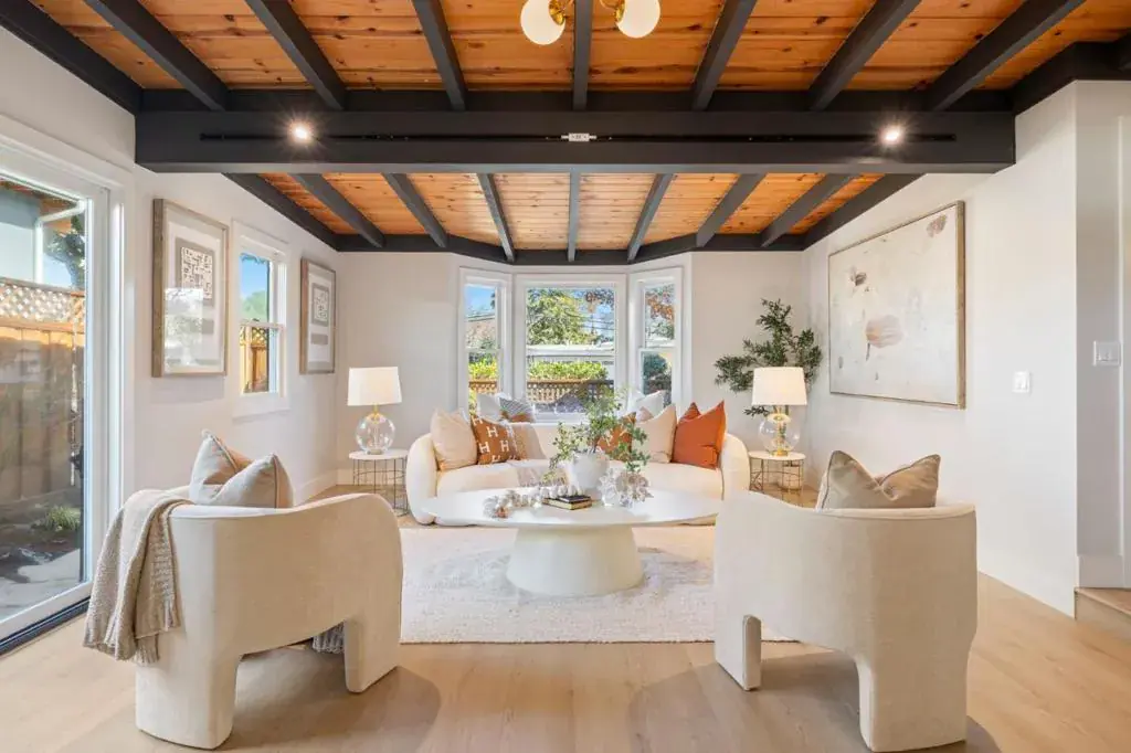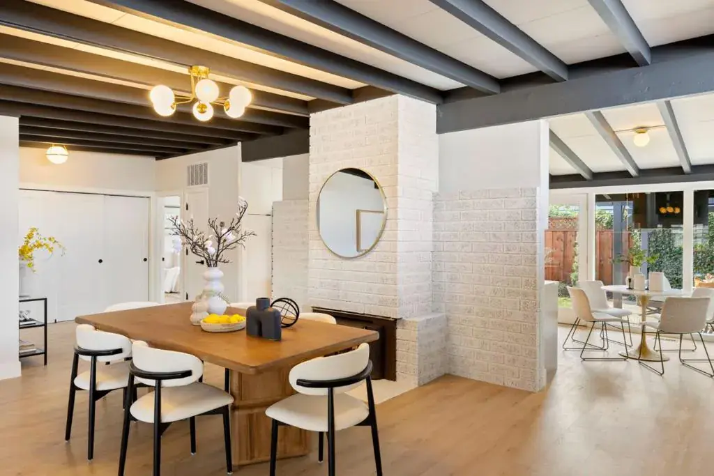 Mid-century charm meets modern design in this fully remodeled, single-level home in Santa Clara with highly desirable Cupertino schools. Originally built in 1955 and thoughtfully reimagined with plans and permits. Interior updates include wide-plank SPC flooring, solid interior doors with matte black hardware, upgraded baseboards & casings, designer lighting, & curated tile & plumbing finishes throughout. Bathrooms feature modern vanities, gold fixtures, & porcelain tile, while smart home upgrades include a Nest thermostat & Ring doorbell. The kitchen anchors the home with custom frameless cabinetry by Modé Concept, Italian porcelain countertops, a stainless steel ledge sink, & Bosch appliances including a counter-depth refrigerator, dishwasher, gas range, & wall hood. Exterior upgrades include a new modified bitumen roof, custom gutters & downspouts, skylights, new double-paned windows, & fresh exterior paint. Professionally landscaped front & rear yards offer auto-irrigation & a newly serviced hot tub. The attached two-car garage includes an epoxy-finished floor, dedicated 220V outlet for EV charging, & a new garage door with a quiet motor. Set on a 5,227 sq ft lot, this move-in-ready home offers timeless style, quality upgrades, & an exceptional location.