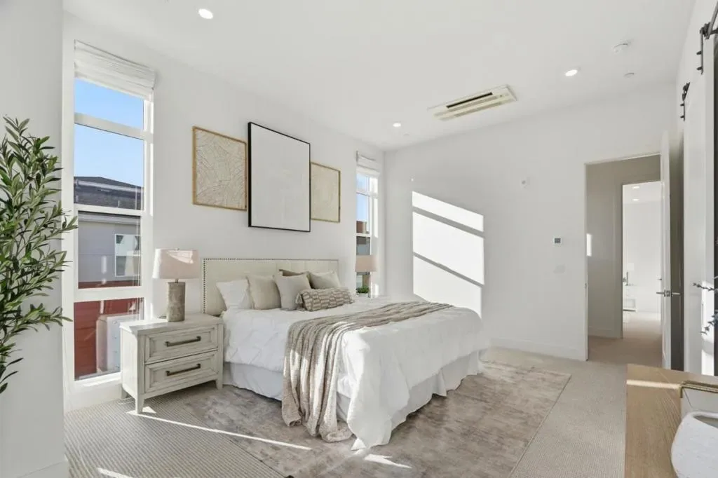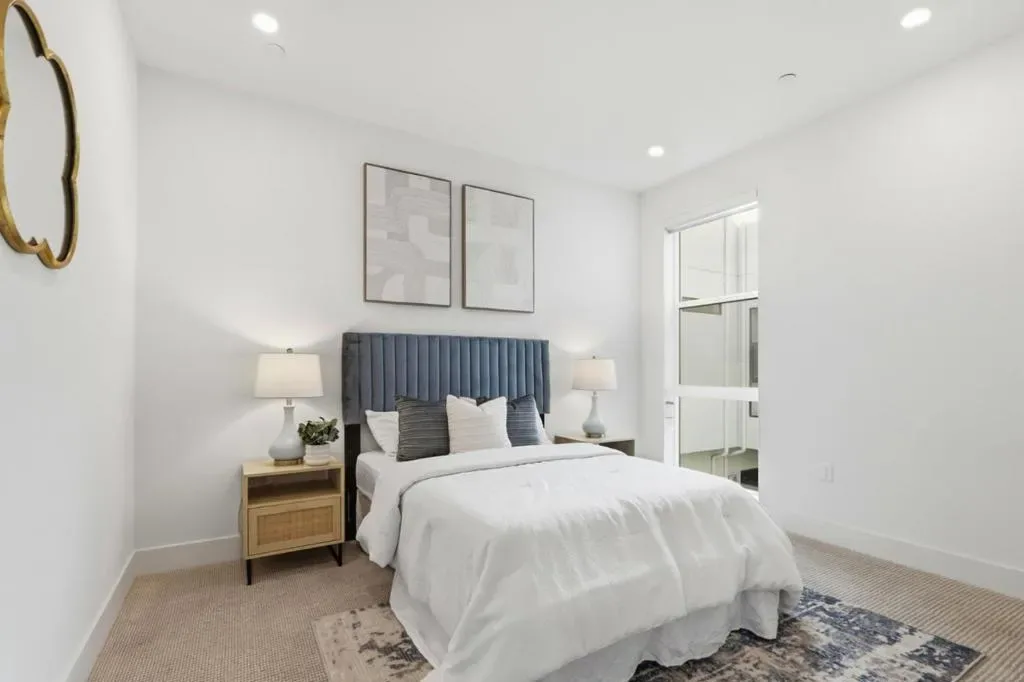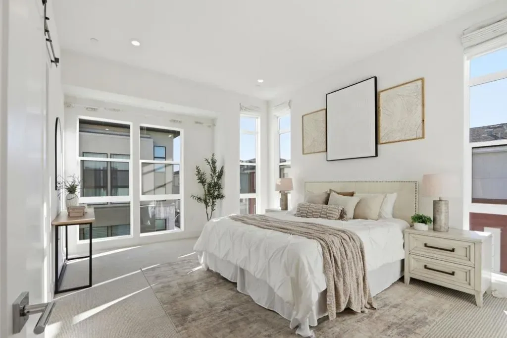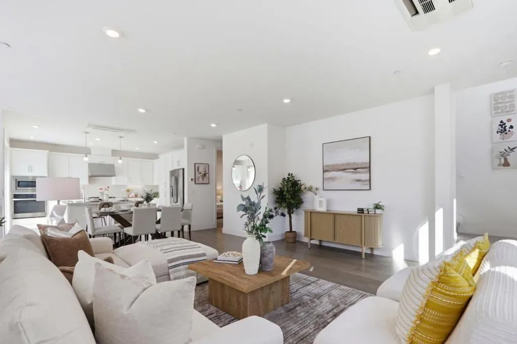 Must-see! Rarely available 3-bedroom plus den townhome in the Nuevo community, built in 2020 and offering 1,924 sq. ft. of modern living space. This stylish home features three bedrooms, a versatile den, and 2.5 baths, thoughtfully designed for both elegance and everyday functionality. The chefs kitchen shines with stainless steel appliances, quartz countertops, and shaker-style soft-close cabinetry. The spacious primary suite boasts an impressive 11-foot ceiling, a walk-in closet, and a luxurious en-suite bathroom with dual vanities and a walk-in shower. Wide-plank engineered wood flooring flows throughout, complemented by smart home features including recessed lighting. The flexible den is perfect for a home office or guest room. Residents enjoy resort-style amenities such as a playground, basketball court, dog park, and beautifully landscaped common areas. Ideally located within walking distance to Costco and Whole Foods, plus dining and entertainment at Santa Clara Square and downtown Sunnyvale. Just minutes from NVIDIA, Apple, Amazon, LinkedIn, and other major tech campuses, with easy access to major highways and the Lawrence Caltrain Station. Dont miss this rare opportunity to own a modern, low-maintenance home in the heart of Silicon Valley!