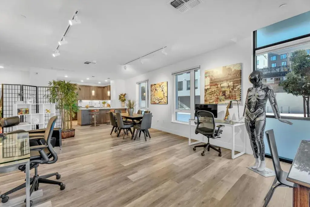 Step into this exquisite 1-bed, 1.5-bath condo, offering 1,900 sqft living space. Designed for modern living, this residence features laminate flooring throughout, complemented by contemporary light fixtures and recessed lighting that highlight its open and airy ambiance. The spacious living room boasts high ceilings and a generous layout. The kitchen features stainless steel appliances, kitchen cabinets with ample storage, and a center island with a sink and chic drop lighting. A versatile loft area, ideal for a second living room or creative space. The primary bedroom is complete with a walk-in closet that offers abundant storage. The primary bathroom has dual sinks and a shower over a tub, providing a serene retreat. Residents benefit from a range of upscale amenities, including a bike storage and dog grooming station in the 2nd floor, a pool, clubhouse, gym and fireplace in the 3rd floor, and rooftop deck in the 7th floor. 1 out of 6 live work spaces can potentially be used as mixed use commercial. Built by Toll Brothers. Conveniently located near shopping, dining, grocery stores, parks with easy access to l-280 and 101. Experience the ultimate in modern living with this luxury condo, where every detail is meticulously designed for both style and convenience.
