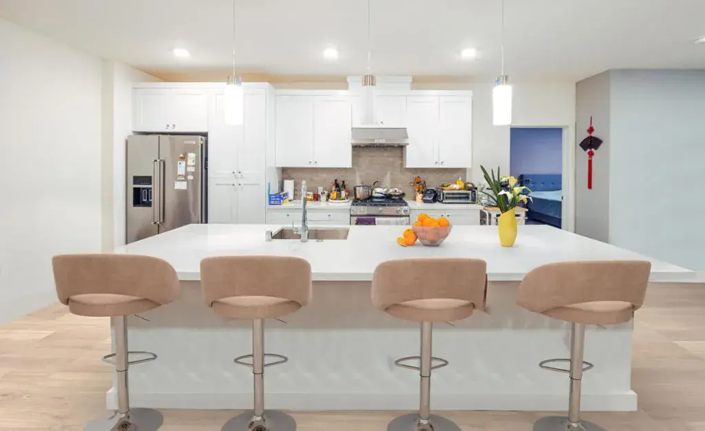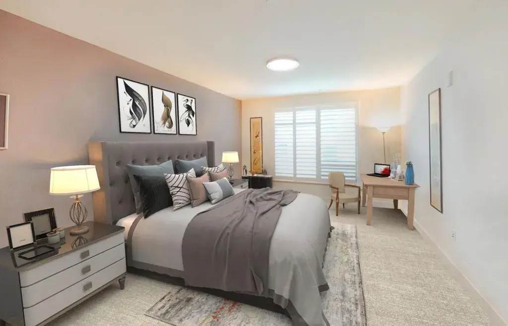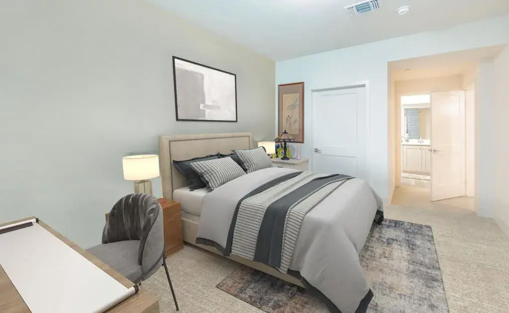 Prime Silicon Valley location near NVIDIA, Costco, DMV, and more. This single-level, newly built home offers luxury living with resort-style amenities. Open-concept kitchen with large island flows into the dining area, great room, and covered patio. Two spacious Master bed-room suits with walk-in closet and its own private bathroom. Approximately $25,000 in upgrades, including new carpet, appliances, countertops, ventilation system, range tiles, and $7,000 in shutter window coverings. Washer/dryer in unit. Two-car garage parking. Community features include a lounge with workstations, pet grooming and bike storage rooms, pool with cabanas, clubhouse, two-story fitness center, and rooftop deck with stunning Silicon Valley views, and BBQ area.