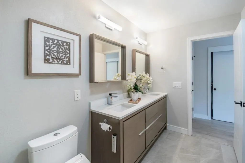 Stunning 3-bed 2.5-bath Santa Clara gem near Apple/Nvidia with great schools! Step inside to find a bright and inviting interior. The living room boasts high ceilings, recessed lighting, and a cozy fireplace. Chef’s dream kitchen is equipped with modern appliances, an island and a wine cooler. Enjoy the private master suite featuring a dual-sink vanity, sun tunnel, and direct balcony access. An additional bedroom downstairs offers deck access and backyard views. Extensive renovations in 2019 included fresh interior paint, upgraded kitchen and bathrooms, new flooring and interior doors, and the comfort of a new HVAC system and a tankless water heater. Extra garage storage and an owned water softener. Prime amenities await with a sparkling pool and clubhouse. HOA covers cold water. Located just minutes from Apple, Nvidia, and AMD, your commute has never been easier. Enjoy a 0.8-mile walk to the prestigious Laurelwood Elementary. Seamless access to Lawrence Expy and El Camino Real places Silicon Valley’s premier shopping, dining, and entertainment at your fingertips.