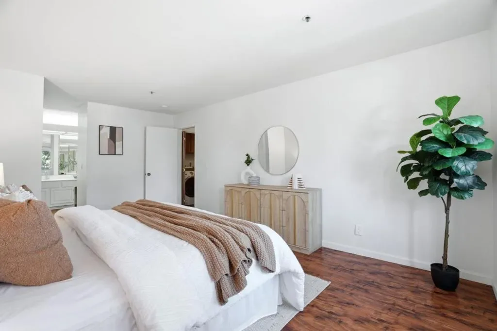 This 1360 sqft unit is situated in the gated Miramar Terrace community and has been beautifully maintained with modern updates. This spacious unit features laminate flooring throughout, a remodeled kitchen with stainless steel appliances and a breakfast bar, and a bright living area with a cozy wood-burning fireplace that opens to a private balcony. The primary suite includes mirrored closet doors and dual sinks, while the second bedroom offers an abundance of natural light to come in through the window. Additional highlights include in-unit laundry, recently upgraded HVAC, and an additional storage unit. Enjoy resort-style amenities including pool, spa, sauna, gym, clubhouse, and secure covered parking. Ideally located in the heart of Silicon Valley with easy access to major highways, tech campuses, shopping, dining, and entertainment. Don’t miss this opportunity to enjoy refined living in one of Santa Clara’s most convenience and desirable communities!