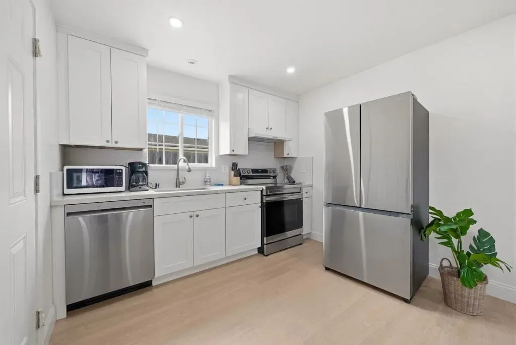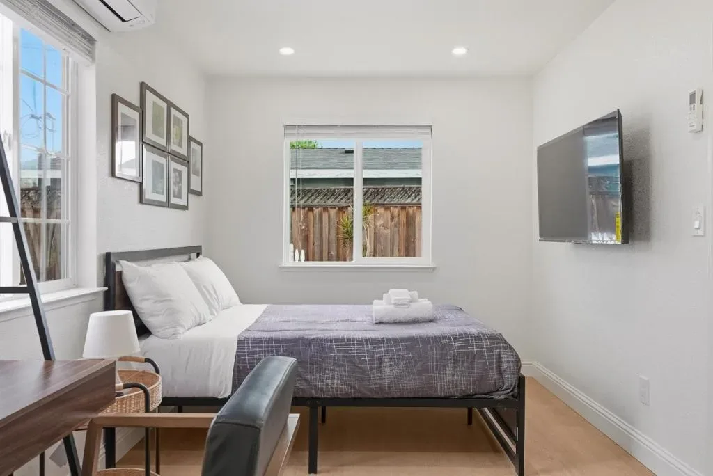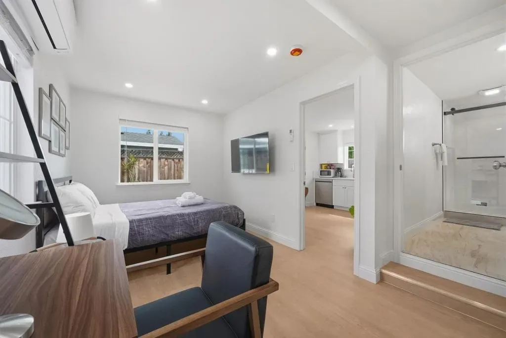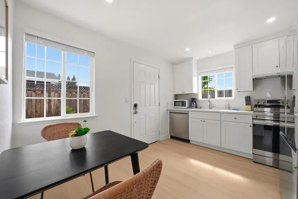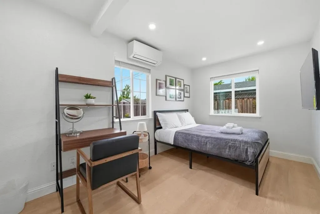 Welcome to this charming single-family home with 4 beds and 2 baths (1,167 sqft), plus an ADU with 1 bed and 1 bath (362 sqft). The home features a front yard with good privacy. Inside, a spacious living room with skylights and recessed lighting flows into the updated gourmet kitchen with quartz countertops and backsplash, stainless steel appliances, and ample cabinetry, connected to the dining area with a stylish ceiling light. A door opens to the backyard for indoor-outdoor living. The hallway includes sun tunnels. The primary suite is at the front with a bay window and en-suite bath with stall shower. A second bedroom also has a front-facing bay window, plus two additional bedrooms. Fresh interior and exterior paint throughout. The hallway bathroom offers a shower over tub. The 2025-built ADU in the backyard has its own entrance, a modern kitchen with quartz countertops and stainless steel appliances, a bedroom with wall unit AC, and an updated bathroom with stall shower and laundry, offering great rental income potential. Convenient location with 7 minutes drive to santa clara convention center, easy access to Hwy 101, 237, Lawrence, and San Tomas Expy, and a short commute to major tech companies. Do not miss this great opportunity!