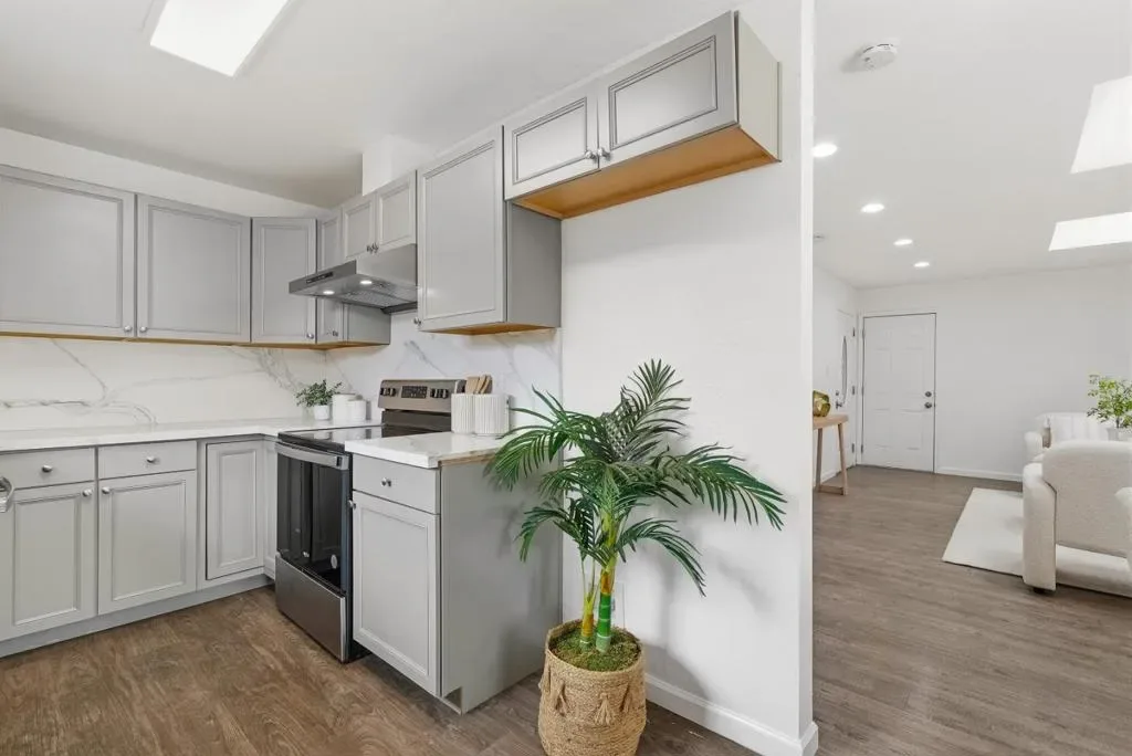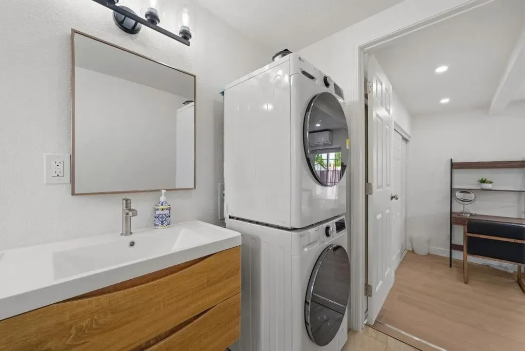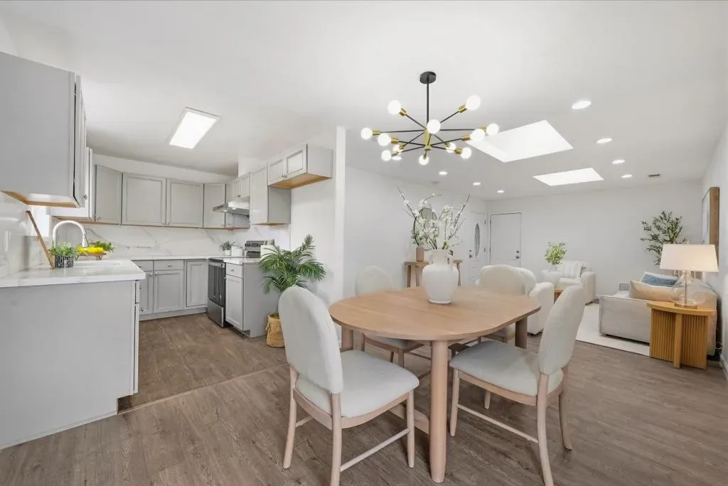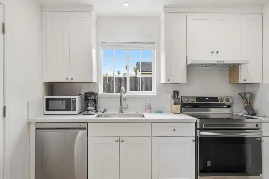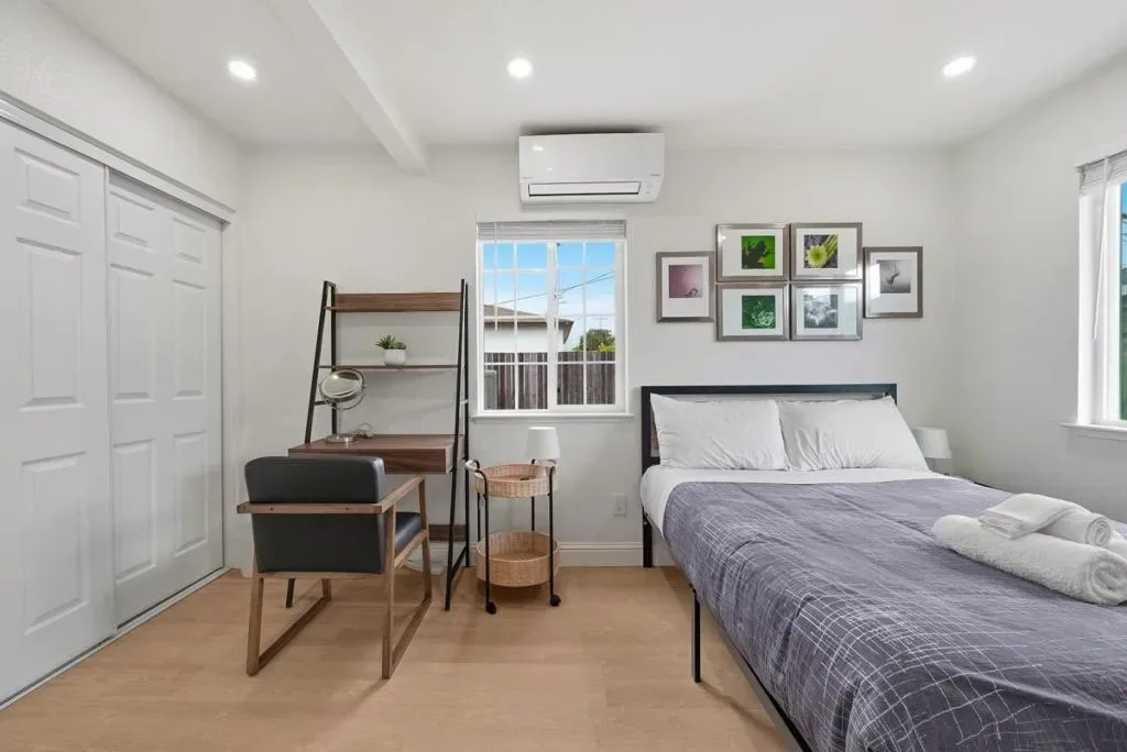 Welcome to this charming single-family home with 4 beds and 2 baths (1,167 sqft), plus an ADU with 1 bed and 1 bath (362 sqft). The home features a front yard with good privacy. Inside, a spacious living room with skylights and recessed lighting flows into the updated gourmet kitchen with quartz countertops and backsplash, stainless steel appliances, and ample cabinetry, connected to the dining area with a stylish ceiling light. A door opens to the backyard for indoor-outdoor living. The hallway includes sun tunnels. The primary suite is at the front with a bay window and en-suite bath with stall shower. A second bedroom also has a front-facing bay window, plus two additional bedrooms. Fresh interior and exterior paint throughout. The hallway bathroom offers a shower over tub. The 2025-built ADU in the backyard has its own entrance, a modern kitchen with quartz countertops and stainless steel appliances, a bedroom with wall unit AC, and an updated bathroom with stall shower and laundry, offering great rental income potential. Convenient location with 7 minutes drive to santa clara convention center, easy access to Hwy 101, 237, Lawrence, and San Tomas Expy, and a short commute to major tech companies. Do not miss this great opportunity!