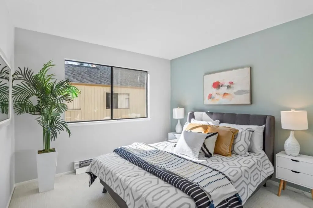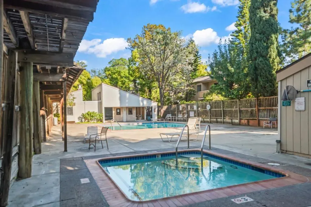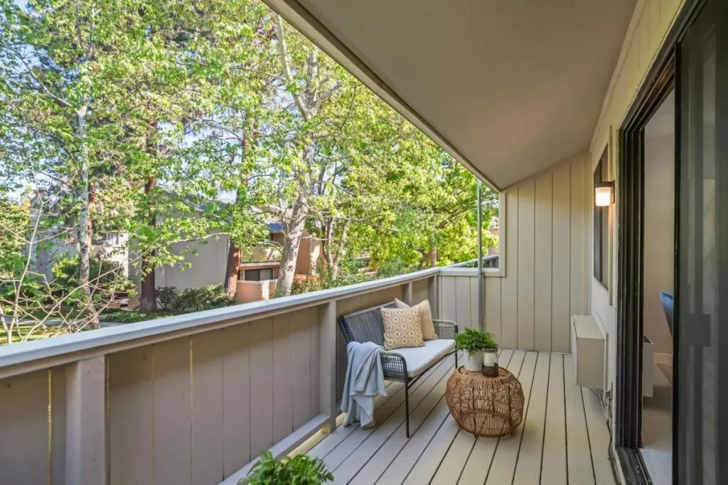 Stylish updates, large balcony overlooking tranquil water feature, & three pools just 2.0 miles to Apple Spaceship Campus! This inviting home offers spacious, open-concept living room & dining area, perfect for relaxing & entertaining. The modern kitchen boasts quartz counters & backsplash, plus new appliances for everyday ease. Both bathrooms shine with new quartz countertops, sinks, mirrors, & fixtures. Chic accent walls add character, & the home includes A/C & two heating units. Arguably, one of the best locations in the entire complex as it is uniquely positioned directly in view of a serene pond with twin fountains. Plus, you’re centrally-located to all amenities & just a few dozen feet from one of the community’s three pools. Other offerings include two clubhouses, two playgrounds, hot tub, wading pool, on-site car wash, assigned covered parking, & storage locker! Central Silicon Valley location near major tech employers including Apple Spaceship Campus & NVIDIA; major thoroughfares for commuters; high-end amenities; public parks including 0.2 miles to the 52-acre Central Park with pickleball courts, public library, lit tennis courts, & Magical Bridge playground, & more! Excellent schools: Central Park Elementary, Cabrillo Middle, & Santa Clara High (buyer to verify)!