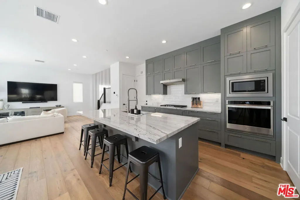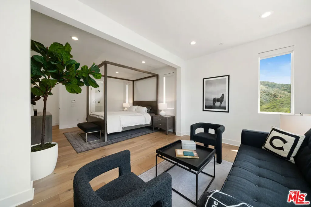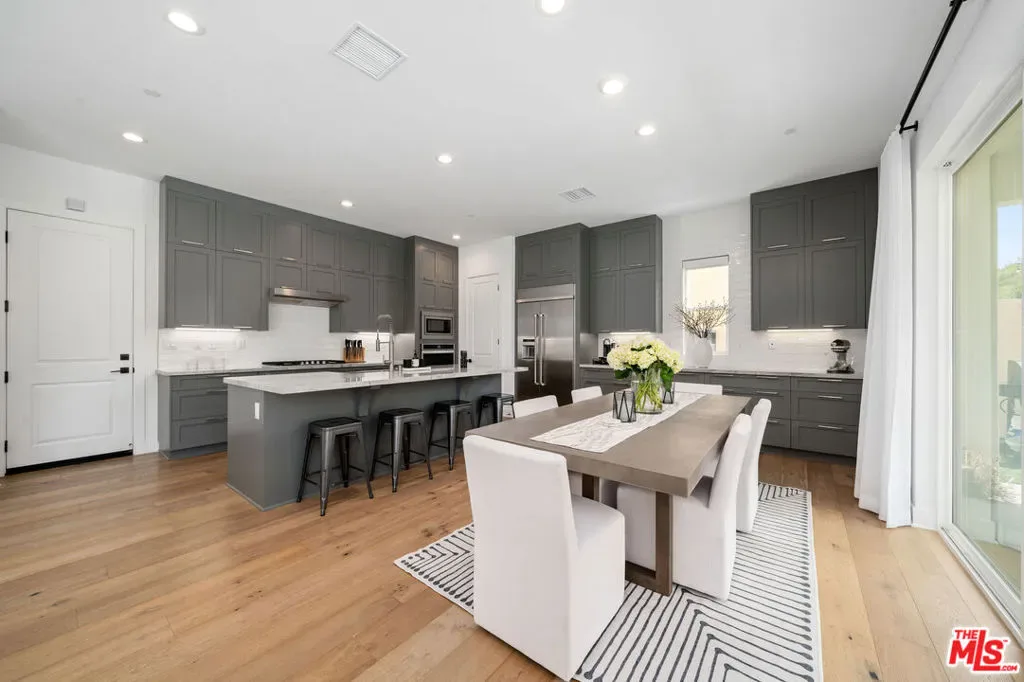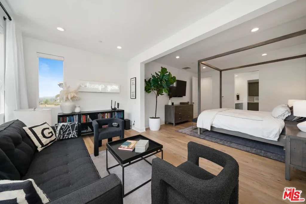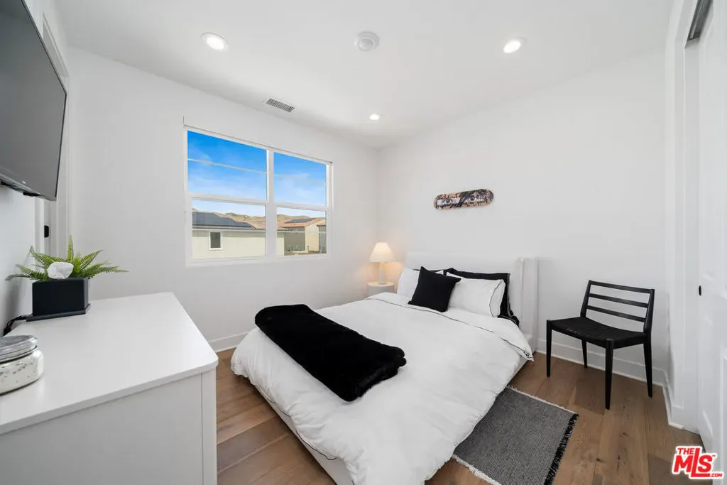 Welcome to this beautiful turnkey home, built in 2022 and located within the gated Plum Canyon community. Upgraded with premium materials and finishes throughout, it offers modern design, abundant natural light, and seamless indoor outdoor living. Upon entry, soaring ceilings, a statement staircase, and wide plank wood flooring create an immediate sense of space and style. The open concept layout connects the kitchen, dining, and living areas, anchored by an oversized island and clean, modern finishes. Large sliding glass doors open to a private backyard with a covered patio, lounge areas, and a peaceful hillside backdrop, creating an ideal setting for both everyday living and entertaining.Upstairs, the primary suite offers a spacious retreat with a spa style bathroom, dual vanities, and a custom walk in closet. Additional bedrooms are well sized, and the loft provides a versatile secondary living space. Residents enjoy resort style HOA amenities, including a pool, jacuzzi spa, cabanas, BBQ areas, outdoor showers, and a waterfall feature. Turnkey, thoughtfully designed, and ideally located near parks, schools, shopping, and commuter access. Buyer to verify all information including, but not limited to, square footage, lot size, permits, HOA, and all property features and conditions.
