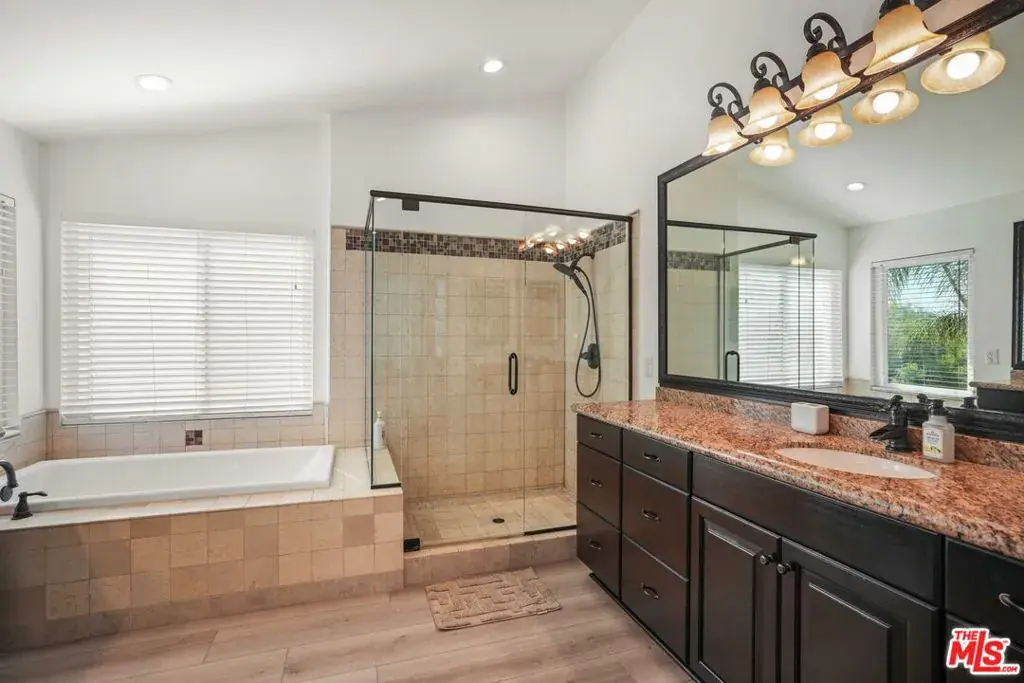 Welcome to 28412 Rock Canyon Drive, a beautifully designed 5-bedroom, 3-bathroom home offering 3,182 square feet of spacious living on a 6,647 square foot lot in one of Santa Clarita’s most desirable neighborhoods. This residence seamlessly blends elegance, functionality, and energy efficiency featuring solar panels, a large side yard ideal for RV or boat parking, and a layout perfectly suited for modern family living. As you enter, you’re welcomed by soaring ceilings and an abundance of natural light that fill the open-concept formal living and dining areas, creating an inviting and airy atmosphere. The thoughtful floor plan flows effortlessly into the heart of the home a ~ spacious kitchen that overlooks the family room. Here, you’ll find ample cabinetry, generous counter space, and a layout designed for both everyday living and entertaining. The adjoining family room features a cozy fireplace and direct access to the backyard, making it the perfect space to gather with loved ones or unwind after a long day. Downstairs, a full bedroom and bathroom offer versatility for guests, in-laws, or a private home office. Upstairs, the expansive primary suite provides a serene retreat complete with a large ensuite bathroom featuring dual vanities, a soaking tub, separate shower, and a walk-in closet. Three additional bedrooms upstairs offer ample space for family, a home gym, or creative workspace, while the open hallway and landing maintain the home’s bright and open feel. Step outside to a private backyard designed for relaxation and outdoor enjoyment. The spacious patio is perfect for barbecues, family gatherings, or simply soaking up the Santa Clarita sunshine. The large side yard offers plenty of room for RV or boat parking, adding a rare and valuable feature to this already impressive property. With a 2-car attached garage, low-maintenance landscaping, and solar panels, this home combines practicality and comfort with significant long-term savings. Ideally located in a peaceful and family-friendly community, this home is just minutes from top-rated schools, parks, shopping, dining, and freeway access. 28412 Rock Canyon Drive embodies the perfect balance of style, functionality, and convenience offering the space, comfort, and energy efficiency today’s homeowners are looking for.