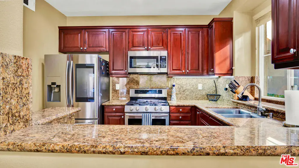 Welcome to this beautifully maintained Santa Clarita corner unit townhome located in the desirable Mariposa community, offering 3 bedrooms, 2.5 bathrooms, and approximately 1,520 square feet of comfortable living space. The open and functional floor plan flows seamlessly from the well-appointed kitchen into the dining and living areas, creating an inviting space for everyday living and entertaining. The kitchen features ample cabinetry and convenient access to a pantry/laundry area. The living space opens to a nicely sized lower-level patio that serves as a pleasant outdoor extension of the home, complete with a drip irrigation system and a mature lime tree, ideal for relaxing or casual outdoor gatherings. The spacious primary suite offers added privacy and includes a vanity bathroom, while the additional bedrooms provide flexibility for guests, family, or a home office. Updated flooring throughout the home. Recent upgrades include a new HVAC system installed in 2024, providing added comfort and efficiency. Residents enjoy resort-style community amenities including a pool, spa, clubhouse, barbecue areas, and play spaces. Conveniently located near shopping, dining, parks, and with easy freeway access, this home offers both comfort and convenience.
