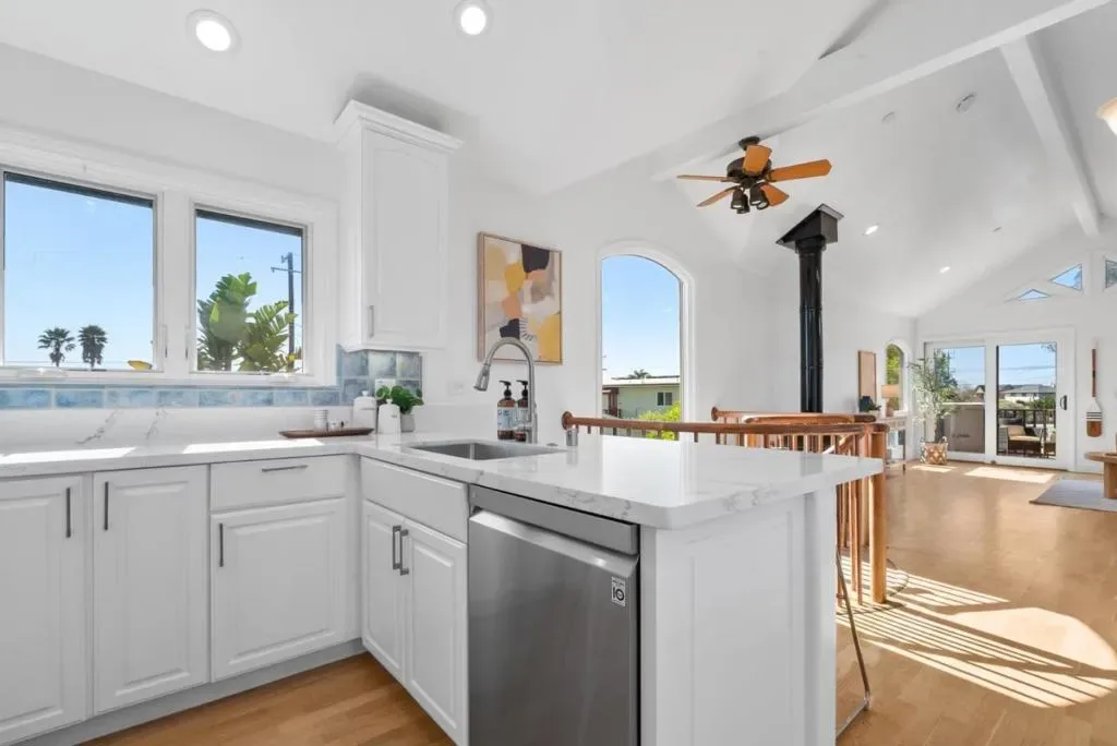 Situated in one of Santa Cruz most sought after neighborhoods, this move in ready home offers ocean views and effortless coastal living. Wake up to the sound of waves, with iconic surf breaks, beaches and scenic coastal paths just minutes away- an unmatched Pleasure Point lifestyle. Custom built in 2004, the home features a reverse floor plan designed to capture ocean views down Rockview. The upstairs living area is bright and airy with vaulted ceilings, expansive windows & abundant natural light. The modern kitchen features quartz countertops, new appliances & an ocean view. Unique finishes including a blue tile entry, spiral staircase and free standing gas fireplace add charm, while radiant heated flooring throughout is a rare luxury. Downstairs, the spacious primary suite opens to a private patio and a cozy second room works well as an office or for a daybed. The deck overlooking the backyard offers a peaceful place to unwind or watch your pet play in the fenced yard. The low maintenance outdoor space includes an outdoor shower, finished shed and a second parking space accessed via the rear alley. With the possibility of securing a vacation rental permit, this home is ideal as a second home or effortless coastal retreat just moments from the ocean – simply move in and enjoy.
