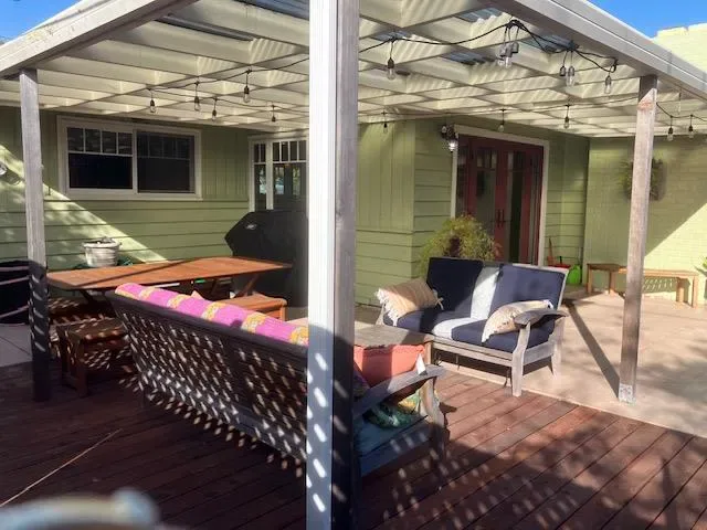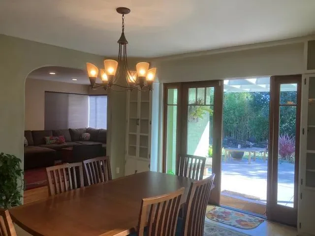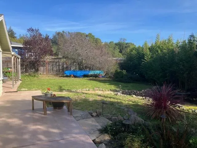 Tucked away at the end of a cul-de-sac his beautiful 3 bedroom, 2 bath home and office space boasts 1,708 sq ft of well-designed living space. The kitchen is a culinary delight, featuring a prep sink, induction cooktop, Wolf- built-in convection oven, self-cleaning oven, and concrete countertops. Amenities include a dishwasher, microwave, exhaust fan, garbage disposal, and spacious refrigerator. The home offers hardwood and stone flooring throughout, adding to its elegant appeal. Relax by the cozy fireplace in the living area, perfect for chilly evenings. The primary suite includes a retreat area and an updated bath with a stall shower, and stone-tile finishes. Hall bathroom has a walk-in bathtub with jets. The laundry is conveniently located in the garage with gas hookups available. Additional features include central air conditioning with ceiling fans, central forced air-gas heating, and energy-efficient options like a tankless water heater and low-flow fixtures. The property sits within the Scotts Valley Unified School District and features a generous lot size of over 10,000 sq ft. A spacious 2-car garage completes the package. The large, fenced backyard with covered patio, decks and firepit area are perfect for a garden, play structure and year-round entertaining.