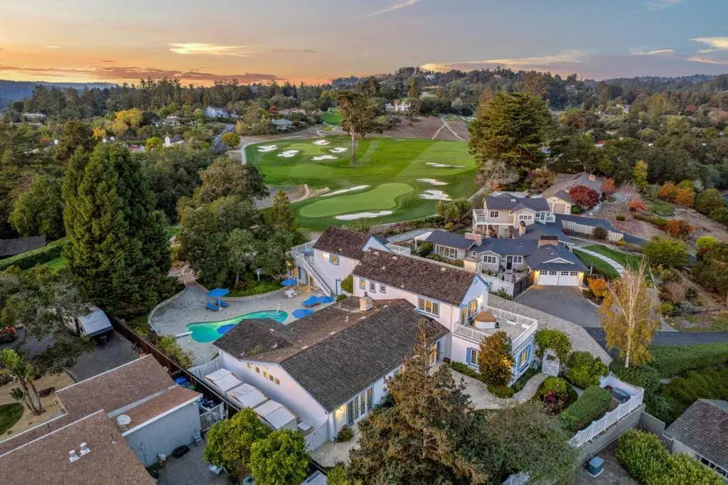 Exquisite gated Pasatiempo residence on a prestigious Top 100 golf course designed by Alister MacKenzie, offering privacy, tranquility, and sweeping views of Monterey Bay and the Santa Cruz Beach Boardwalk. Located at the end of a quiet lane and backing directly onto the fairway, this special property is surrounded by natural serenity. The highly functional floor plan is paired with an elegant, warm, and inviting design throughout. Two primary suites are featured, one with a fireplace, along with two offices, including one filled with natural light and garden views. The kitchen is a dream with a large island, butlers pantry, and dining area overlooking the garden and pool. Soaring ceilings and expansive windows highlight the spacious living room with fireplace and a separate formal dining room. A stunning art studio with its own patio captures beautiful views. The sun-filled backyard showcases a pool with stone decking, plus an incredible bonus/game room with full bath. Multiple French doors open to stone courtyards, mature trees, rose gardens, and multiple entertainment patios, all leading to a beautiful stone driveway. A remarkable setting with breathtaking views awaits within the gated community of Pasatiempo Golf Course.