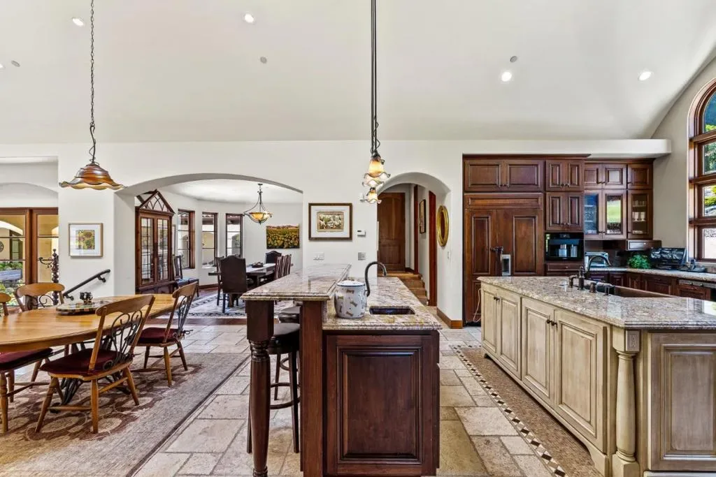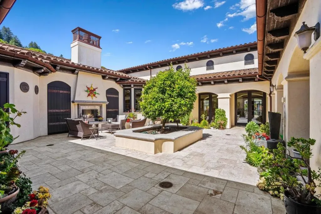 Nestled in a meadow & surrounded by over 21 acres of natural beauty, this magnificent gated Tuscan-inspired estate includes 1.5 acres of Pinot Noir grapes, offering a unique opportunity to own a private vineyard just 10 minutes from both Santa Cruz & Hwy 17 for easy access to Silicon Valley. At the heart of the single-level home lies a charming gated interior courtyard adorned with fruit trees, an outdoor fireplace, & a welcoming guest suite. The homes open layout, with abundant windows & French doors, invites seamless indoor-outdoor living. The spacious great room flows effortlessly into a chefs kitchen with other spaces including a formal dining room, family room & a pass-through bar opening to a built-in BBQ center beside the resort-style pool. The expansive grounds offer a bocce court, greenhouse, raised garden beds, a custom playground, a two-story treehouse with suspension bridge, pool & spa with designated bath, & multiple outdoor dining & lounge spaces. For automotive enthusiasts, an attached 4-car garage pairs with a separate 2-story barn/workshop featuring a car lift and room to accommodate up to 7 additional vehicles. The barn also includes a studio apartment & sits on a gently elevated section of the property, offering panoramic views & additional usable land.