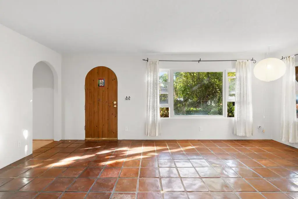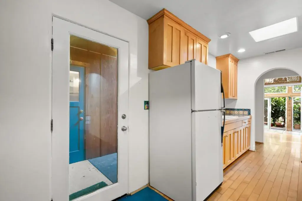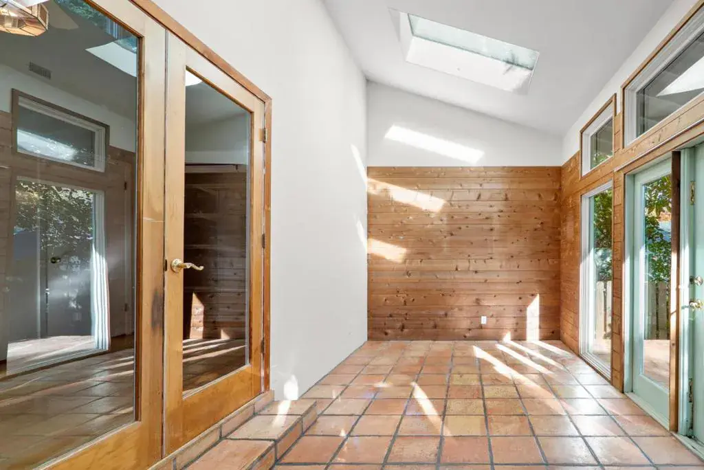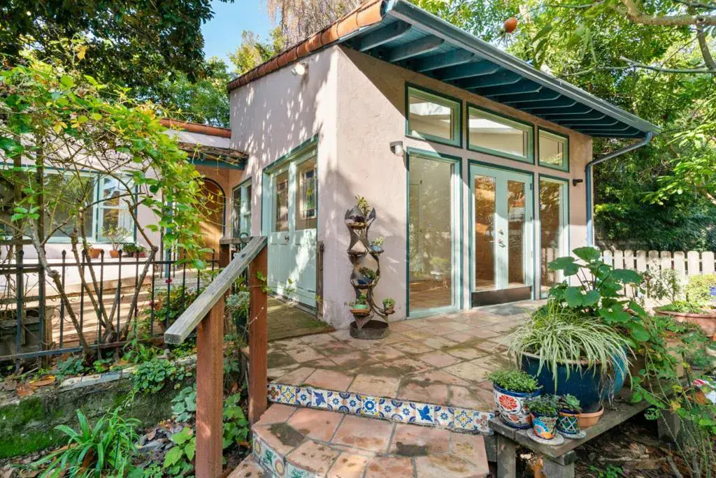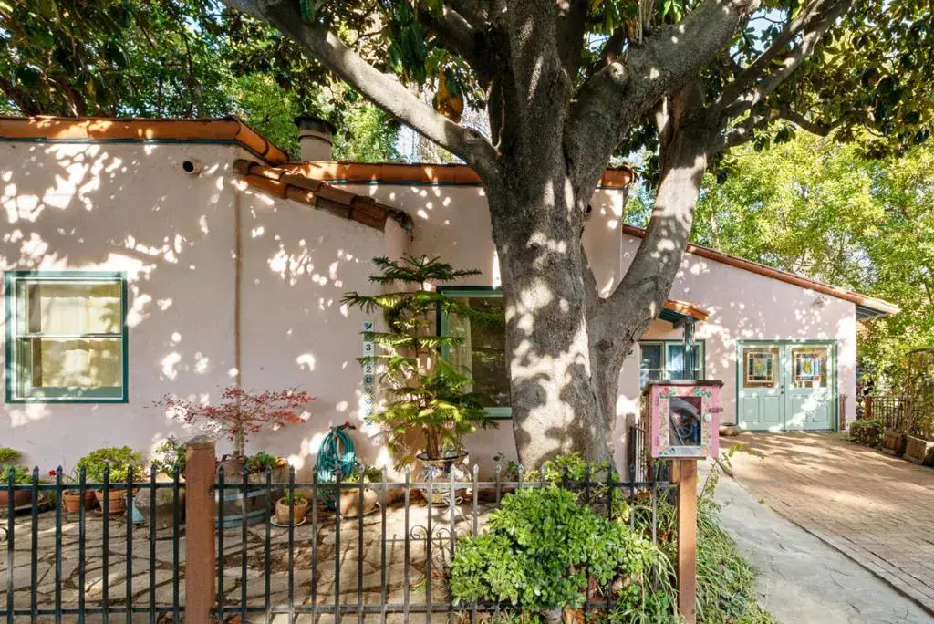 A Spanish-style jewel on a quiet street, this 2 bed, 1.5 ba stucco cottage is naturally cool in summer and comfortably warm in winter. Step inside the graceful arched doorway to the cozy living room with hand-selected saltillo tile floors, garden views, and Taos-feel fireplace. Short hallways lead to bedrooms, bathrooms, and a galley kitchen with hardwood floor and plenty of cupboard space. Skylights, clerestory windows & glass doors provide pure natural light as you step from the larger bedroom into the sunroom/artists studio. Formerly a garage, this light-filled room has 2 sets of double doors to patio and garden areas. Open the doors & provide a delightful indoor-outdoor space for gatherings, w/ a brick patio in front home & a tiled deck overlooking a drought-resistant garden of flowering shrubs & fruit trees. Pick your own avocados, pears, lemons & tangerines, dine in the garden with friends, breakfast in the sunroom as birds and butterflies flit about. While theres no garage, 2 small sheds, discreetly located, offer storage space; washer-drier hookups are found in a sheltered back-deck area. Close to the heart of vibrant Santa Cruz, its an easy walk or bike to beaches, shops, restaurants, library, playground, community center, concert venues, theaters, schools and museums.