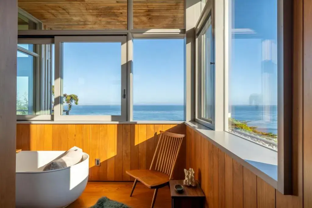 Surf House sits at the edge of one of the most beautiful, wild, and biologically diverse treasures in the world- the Monterey Bay. Designed by Feldman Architecture and Commune Design, this award winning home fits into the coastline as if created by nature’s hand. Lovingly crafted from reclaimed and repurposed Monterey Cypress, the refined elegance of this two-story home reflects the natural world, and the culture and values of the world-renowned neighborhood in which it resides. Heartwood from Monterey Cypress was integrated into all aspects of Surf House’s design. The resplendent floors, paneling and cabinetry glow in the natural sunlight that illumines this gloriously tranquil home. Surf House is roughly 700 feet to access stairs leading to The Hook, one of many nearby crown jewels in the Santa Cruz World Surfing Reserve. A few of many highlights include a chef’s kitchen, an outdoor kitchen, a copper jacuzzi, an infrared sauna, and a surfboard room with wet bar, overlooking a private courtyard with a fireplace. From the front courtyard through the cascading floor to ceiling-high doors of the Great Room, there are stunning views, and vibrant life-affirming rhythms of the Bay- a paradise of solace, an entertainers playground, a sanctuary of inspiration and peace.