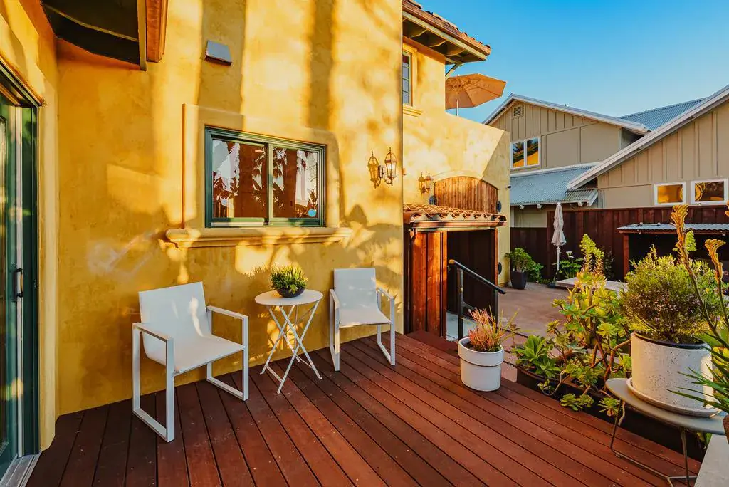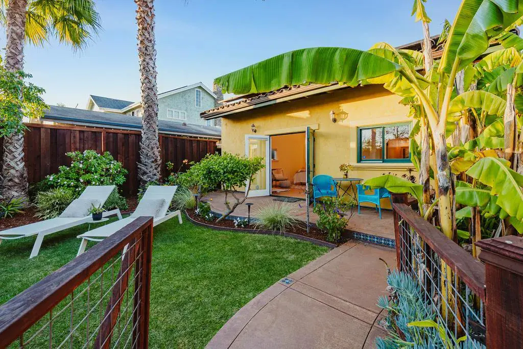 There is something quietly special about Centennial Street. Mornings begin with sea air drifting through open windows. Evenings carry the distant sound of seals along the coast. 5-mins to Lighthouse Field & the wharf. This is Westside Santa Cruz living at its most natural. The home was originally built by a contractor for his own residence, later owned by a world-renowned installation artist, using powerful visual narratives through multi-screen installations. Spanish-style stucco, warm textures, & an easy flow connect the entry, dining, & kitchen spaces. Southern-facing patios bring sunlight into the primary bedroom, while rear living areas settle into golden evening light. Birds of paradise & palms frame the front garden, with curated lighting creating a soft glow indoors & out. The primary suite opens to a private patio for sunrise coffee. A permitted detached ADU with its own yard provides flexible living or rental potential. The drive-through garage with backyard access, & a 240V electric charger. The street itself remains remarkably quiet, with little neighbor noise & a calm residential feel. Warm, organic, & deeply livable. A home shaped by light, ocean air, & everyday ease.