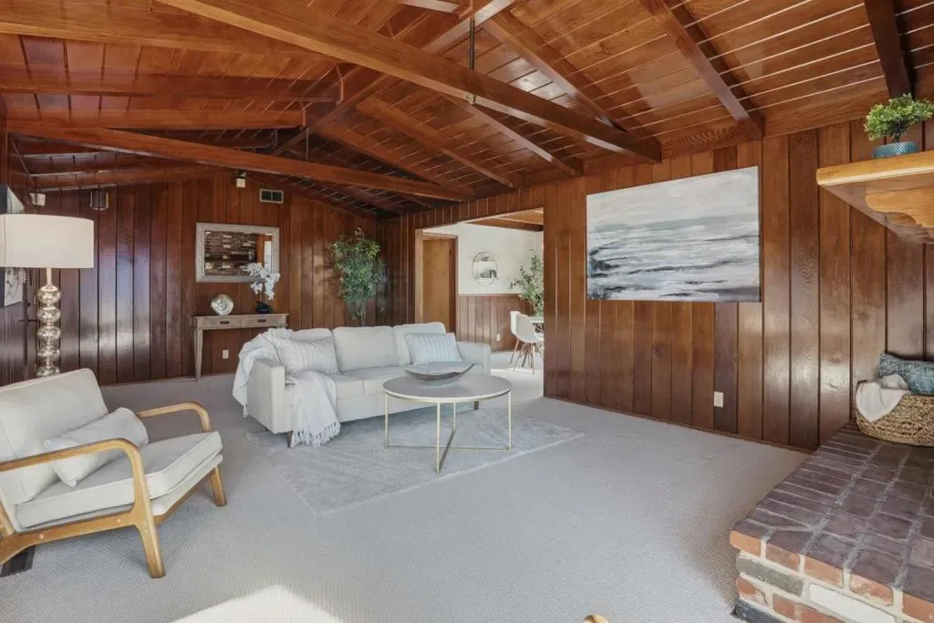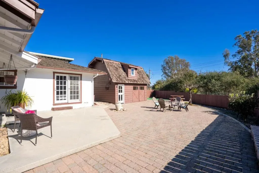 Amazing location w/ a 7 minute stroll to the beach and no rear neighbors. Beautiful custom home w/ fantastic woodwork! You will absolutely LOVE the Living Room w/ its beautiful brick fireplace & hearth, extra large windows w/ ocean peaks, & vaulted wood beam ceilings giving this beach home the feel of a Tahoe cabin! It is sure to be the favorite gathering place for friends & family. The kitchen & dining areas are light & bright w/ direct access to the expansive yard, making Al Fresco dining a breeze. The Primary Bedroom Suite is very spacious w/ a large walk-in closet & full En Suite. Additionally there is a well-sized guest bedroom & full guest bath. The 2-car garage has a built-in office area, that can easily be converted back if desired. The backyard has beautiful paver hardscaping, perfect for summertime entertaining, which extends to the front creating a great driveway for vehicles/RV/boats. There is also an AWESOME workshop w/ a woodburning stove, full bathroom AND upper game room! Want to practice your golf skills? Well you are in luck because there is also an adorable putting green AND plenty of space for a garden, too! With no backyard neighbors & easy to maintain landscaping, this home is a MUST SEE w/ so much charm & character and so close to everything!