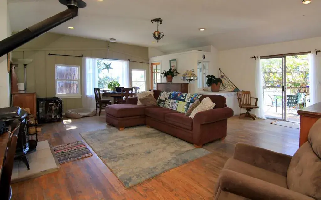 This single level home has been updated over the years and is situated in the desirable Prospect Heights neighborhood within walking distance to De Laveaga Elementary School. There are hiking trails nearby, a golf course, and just minutes from the beach. The interior features a spacious, open living room equipped with a wood stove . Both the living room and primary bedroom offer access to private decks. Additional features include a separate utility room, a basement for extra storage, and a detached 2 car garage. The large lot boasts meandering gardens, a beautiful redwood tree, a greenhouse, a pond and storage shed. This property offers significant potential for its next owner , and may be a good candidate for a lot split.