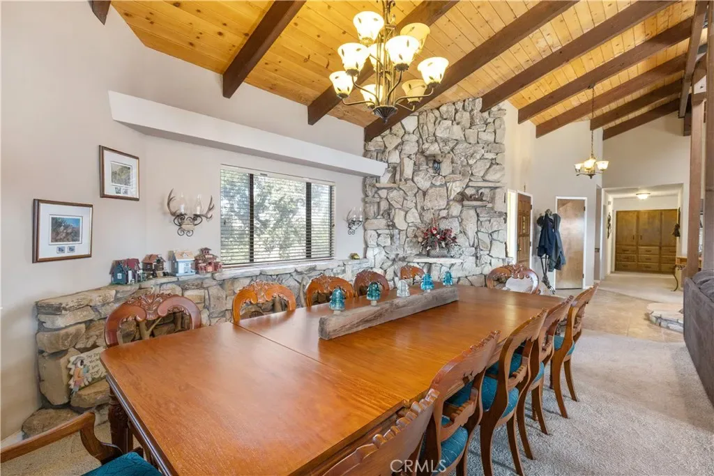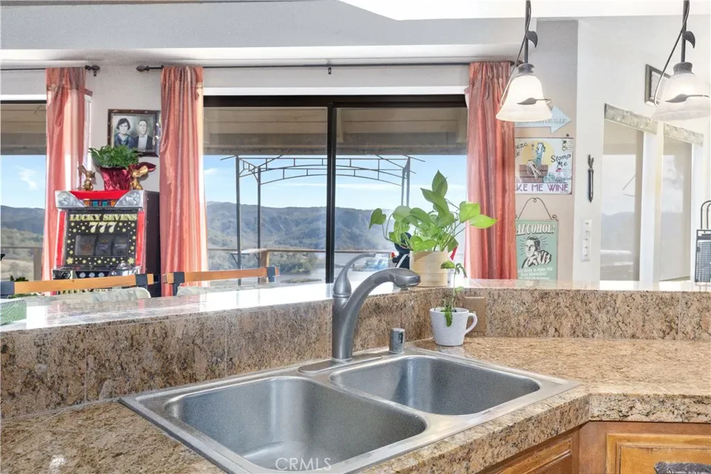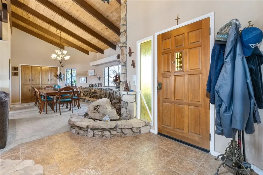 Tranquil Mountain top retreat with million-dollar views of Santa Margarita Lake! Custom built home with exceptional features of an impressive rock centerpiece that greets you as you enter which is equipped with a waterfall and koi pond. The rock continues into a daunting chimney for both the living room and the family room fireplaces, one with a wood burning stove inserts for functionality and beauty. The massive beamed ceilings are finished with tongue and groove wood providing ample space for art or collections. The open floor plan includes a dining area suitable for sizeable gatherings. The kitchen is a chef’s dream with a huge butcher block island, built in refrigerator and freezer, double ovens, lots of storage and counter-space plus a massive walk-in pantry/butlers pantry. The tinned center ceiling provides a modern expression. The attached breakfast nook has a spectacular view of the lake.