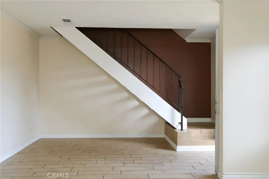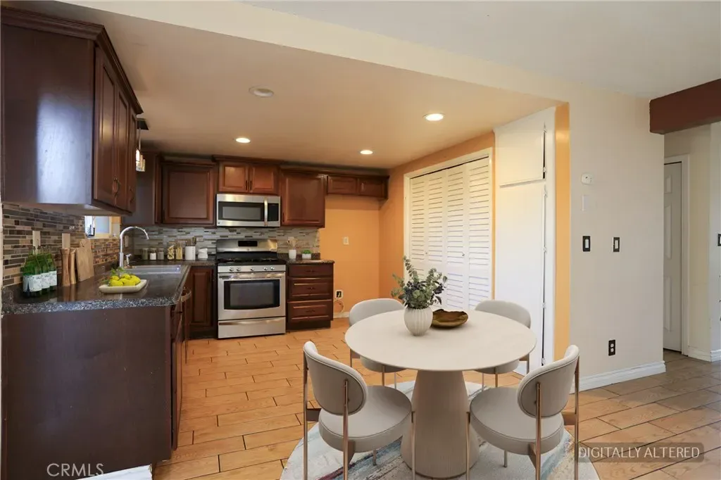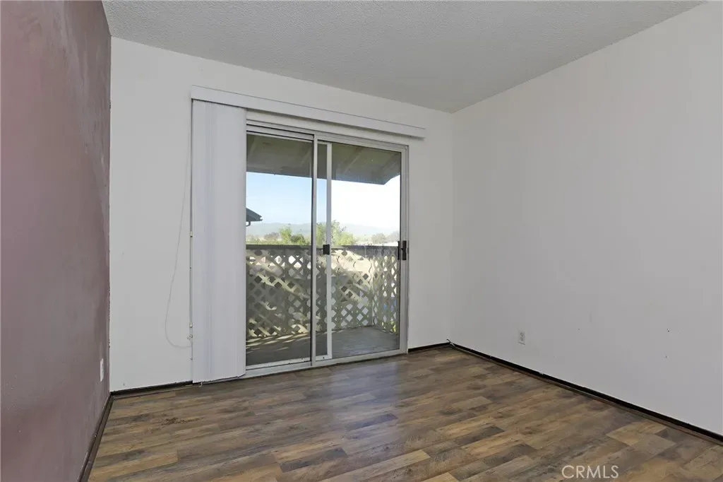 The primary bedroom includes a large walk-in closet, and additional storage can be found throughout the home. A sliding glass door off the dining area leads to a private backyard space, perfect for relaxing or outdoor dining.