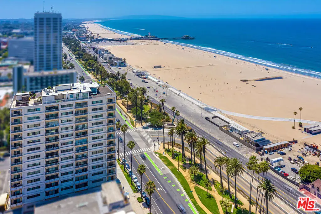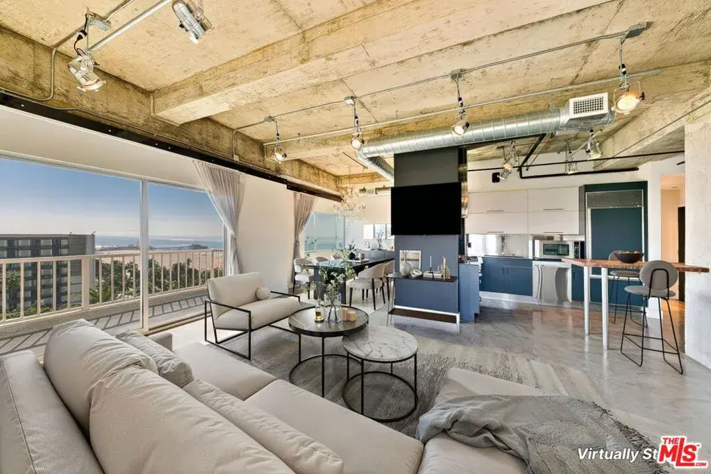 Discover this architecturally striking oceanfront high-rise loft commanding sweeping views of the entire Santa Monica coastline and cityscape from every corner. This meticulously curated residence features premium finishes: cutting-edge appliances, stainless steel feature walls, polished concrete flooring, and soaring raw surface ceilings. Filtered coastal light permeates the open-plan living spaces, crafting an elevated urban sanctuary. The modern-industrial kitchen boasts ample storage, built-in refrigerator, and a raw wood peninsula for food prep and serving. A serving counter with temperature-controlled wine storage elegantly separates the kitchen from the dining area. Guests will enjoy the powder room with pearl tiles, sharp lines, and minimalist designer touches. The living space spills out onto the wraparound terrace revealing commanding views of the entire Santa Monica coastline. The primary suite functions as a private wellness retreat featuring a bespoke closet, a statement elevated soaking tub, oversized steam shower, and an expansive vanity. Coveted Santa Monica address provides immediate access to the 3rd Street Promenade, iconic Santa Monica Pier, world-class beaches, Palisades Park, and instant access to Pacific Coast Highway and I-10 freeway.