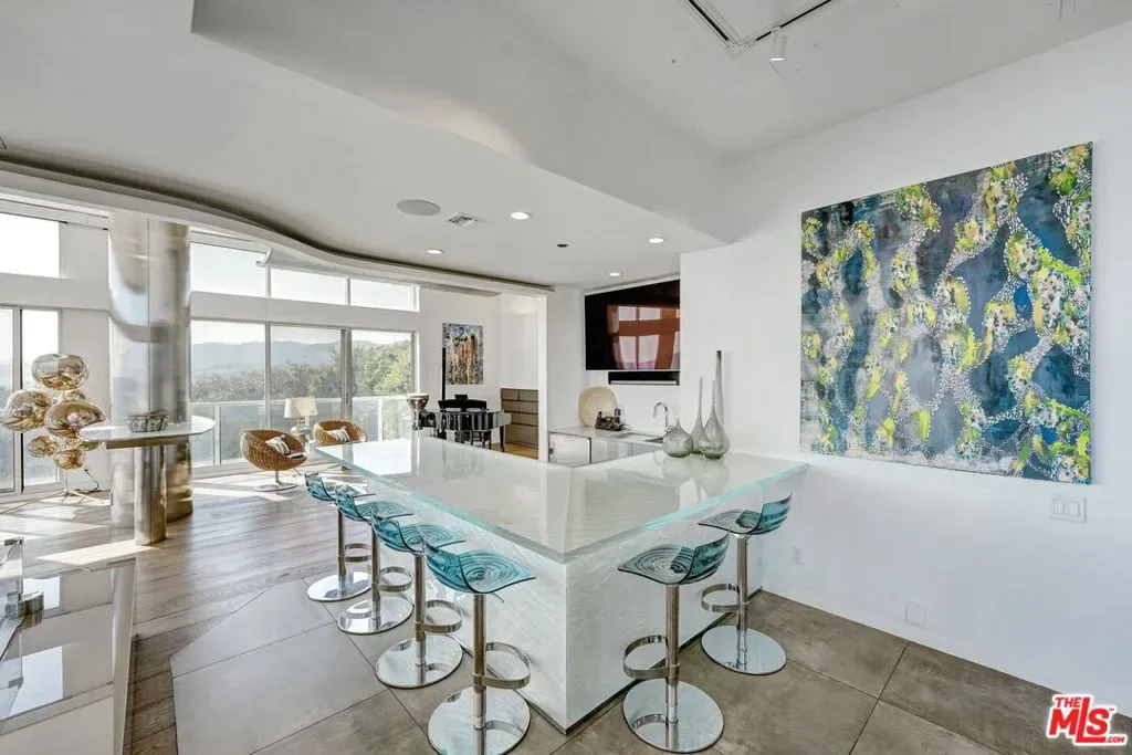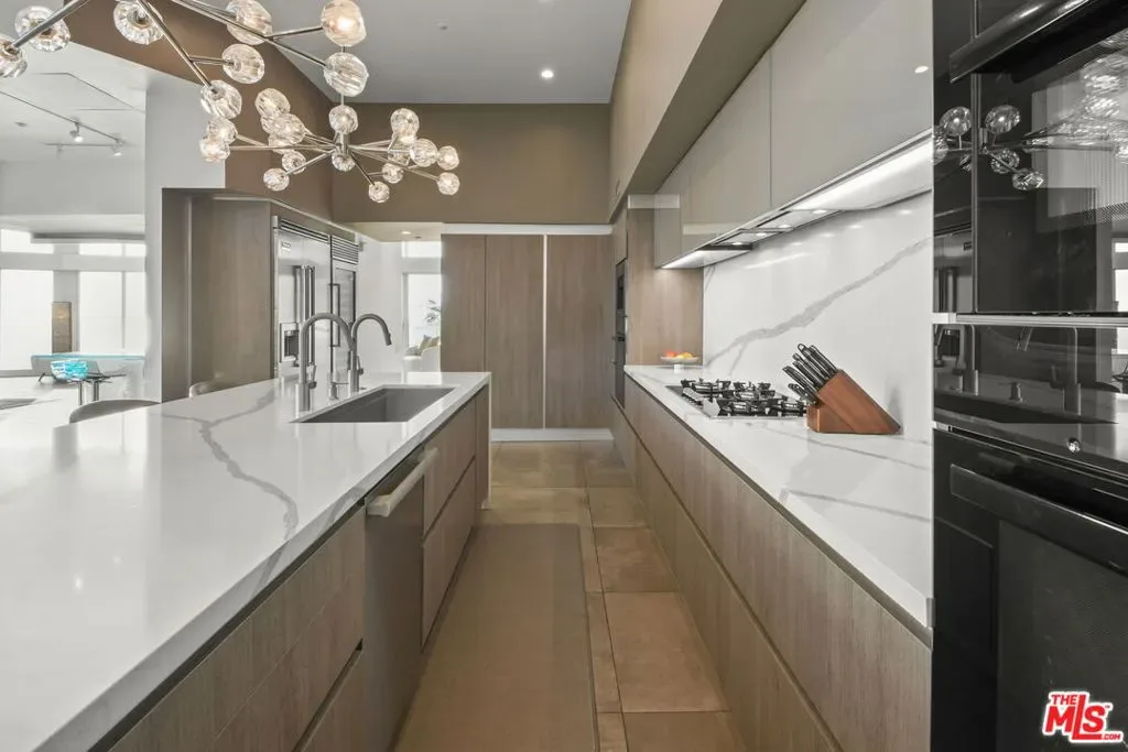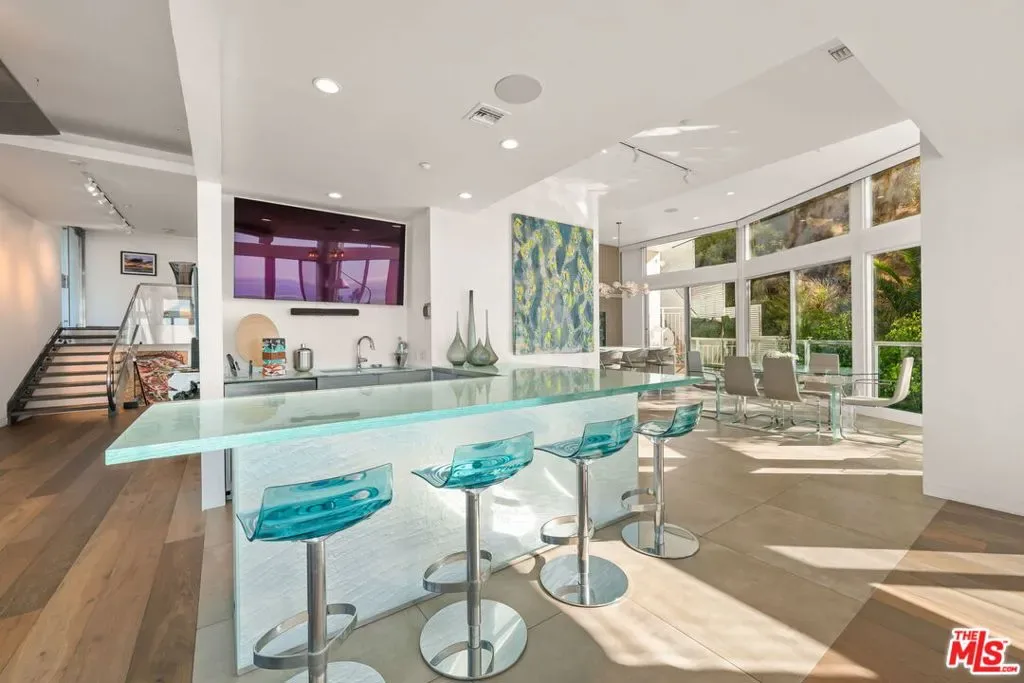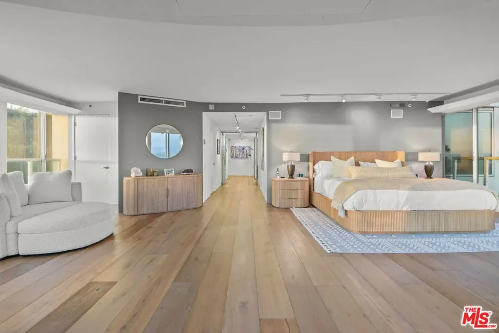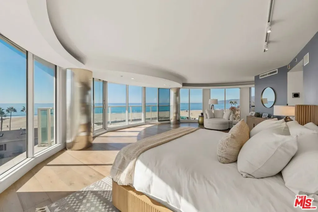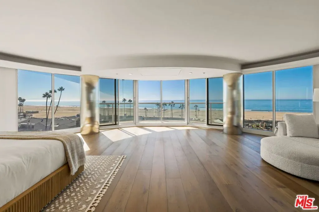 A front-row seat on Ocean Avenue and there is nothing else like it. A100 is the only two-story residence in the building, and its position, scale, and architecture simply cannot be replicated. Full 180-degree ocean frontage. Soaring 12-foot ceilings that flood the main level with natural light. Uninterrupted blue-horizon views from both the living areas and the primary suite. While other units offer a room with a view, A100 lives like a private oceanfront home with true separation of spaces, dramatic volume, and a layout that does not exist anywhere else on Ocean Avenue. From sunrise to sunset, watch sailboats drift past, dolphins play in the surf, and the Santa Monica Pier Ferris wheel glow against the evening sky. Each July, fireworks illuminate the coastline best enjoyed from your private ocean-view deck or gathered around the custom sea-glass light-up bar inside. Step through the private tunnel for a morning walk on the sand, or stroll to world-class seaside dining just moments away. Inside, every detail has been chosen for comfort, elegance, and effortless living. The chef’s kitchen features top-of-the-line Miele and Viking appliances, quartz countertops, and a 150-bottle Viking wine cooler. All three bedrooms include ensuite baths, with a chic powder room for guests. One bedroom has been transformed into a private media lounge with seven leather recliners easily converted back to a bedroom or home office. A spacious laundry room with full sink and custom cabinetry, Lutron solar shades throughout, and three parking spaces with two EV chargers complete the picture. The primary suite mirrors the living room’s panoramic ocean view and offers dual walk-in closets and a spa-inspired bath with a BainUltra hydro-jetted tub with heated backrest, chromatherapy, and aromatherapy. The building’s resort-style pool area has just completed a multi-million-dollar renovation. 101 Ocean Avenue live every day like a vacation. Link to 3D walkthru: Https://my.matterport.com/show/?m=pkDQUQsxUtx&
