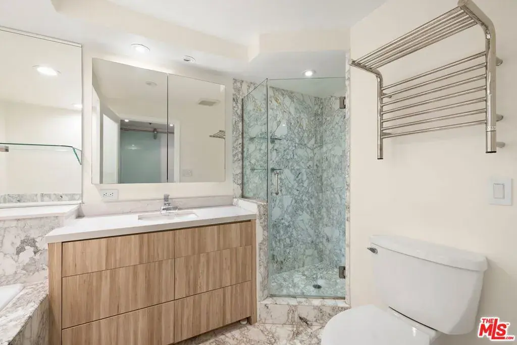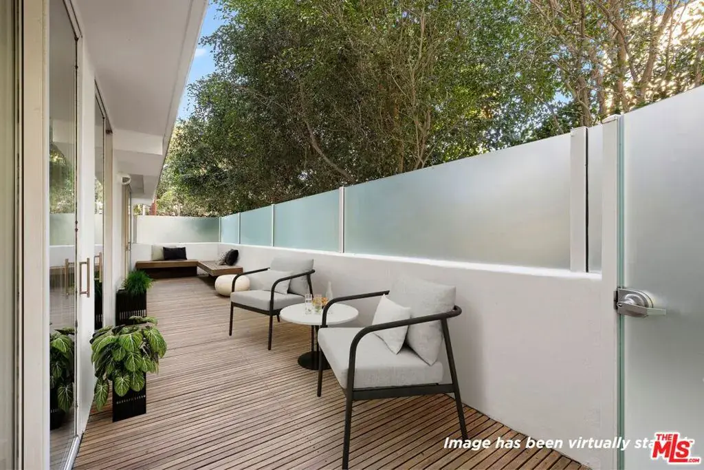 Experience the pinnacle of modern coastal living in this custom 2-bedroom, 2-bathroom residence at 101 Ocean Ave, one of Santa Monica’s most iconic buildings. Framed by ocean views and lush verdant surroundings, floor-to-ceiling windows throughout create a serene, garden-like atmosphere that feels worlds away from the city while remaining steps from the sand. The generously scaled living and kitchen combination is anchored by bespoke built-ins, custom glass cabinetry, and a kitchen featuring marble countertops, wine display, and slab stone island. No unit in the building offers more outdoor entertaining space than this one, combining a front balcony with ocean views, and a sprawling east-side patio complete with built-in seating, making it an exceptional setup for hosting or simply enjoying the coastal air. Hardwood floors carry through both bedrooms, each with private deck access. The building is managed by five-star hospitality professionals, and features a 24-hour front desk and freshly reimagined grounds including pool and spa, multiple curated seating areas, an outdoor kitchen with BBQ and pizza oven, a full fitness center, yoga studio, dog park, organic gardens, and a sky lounge with sweeping Pacific views. Steps from the sand and within easy reach of Giorgio Baldi, Golden Bull, Canyon Square, Montana Avenue, and downtown Santa Monica, this is a rare convergence of privacy, craftsmanship, and location.