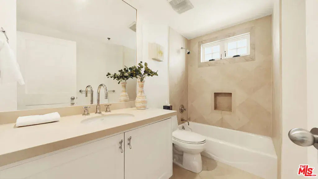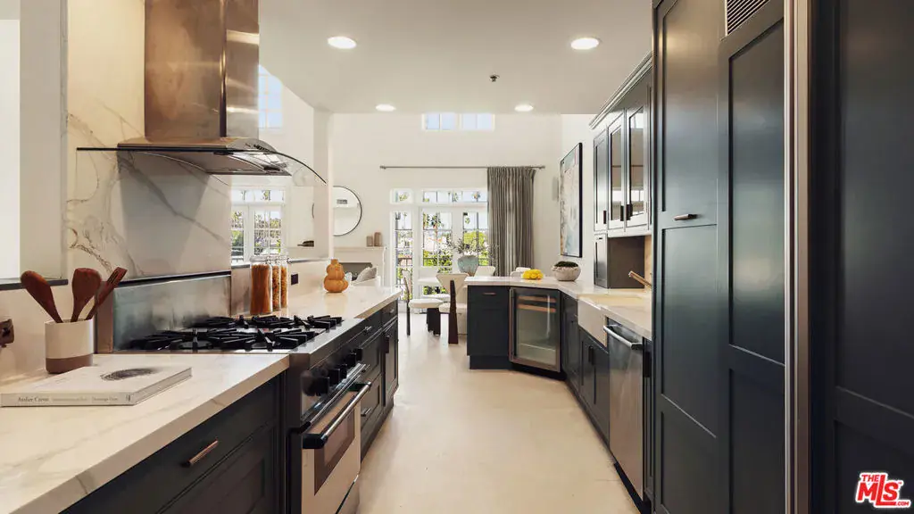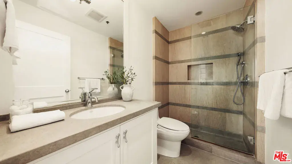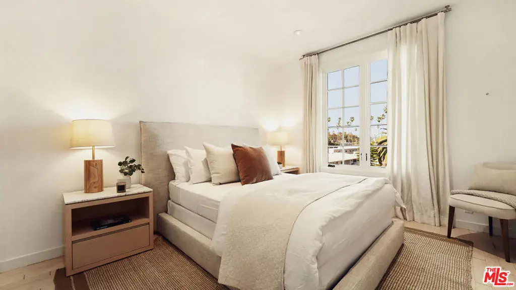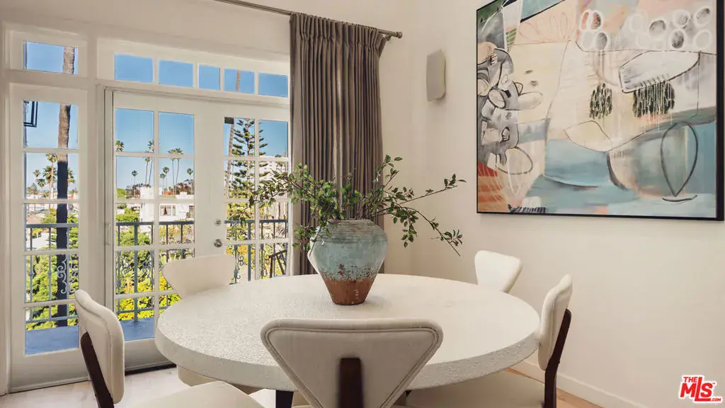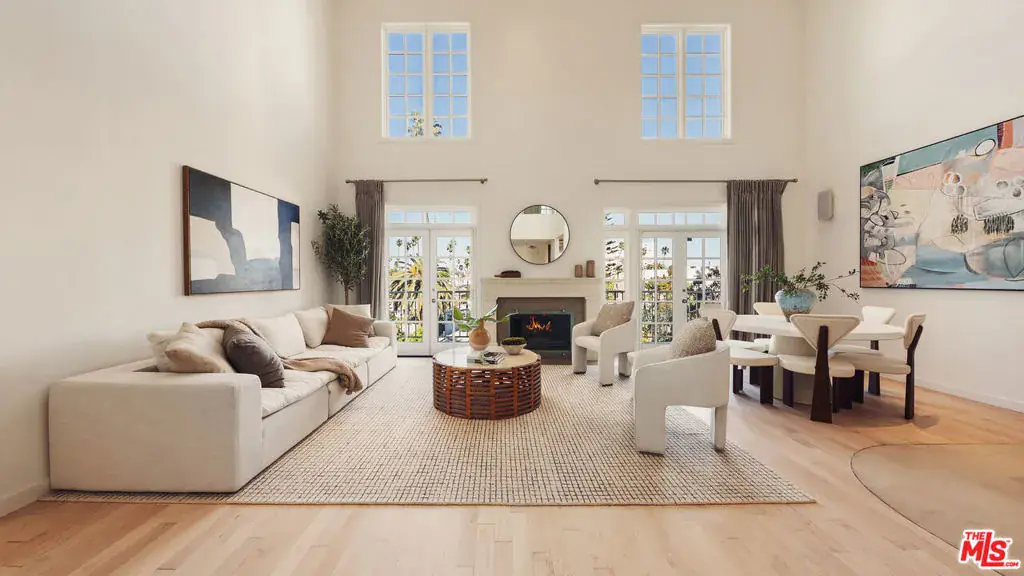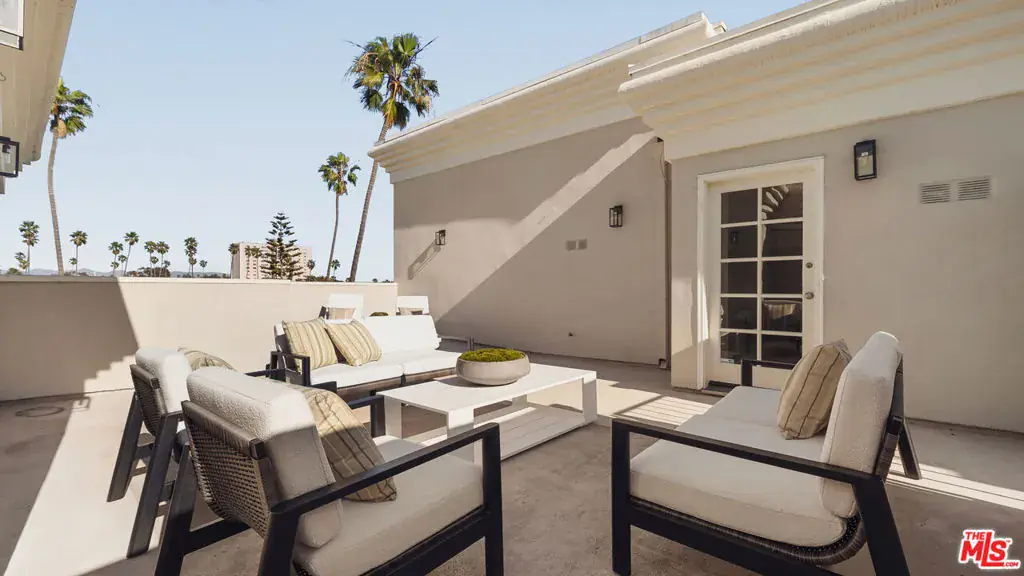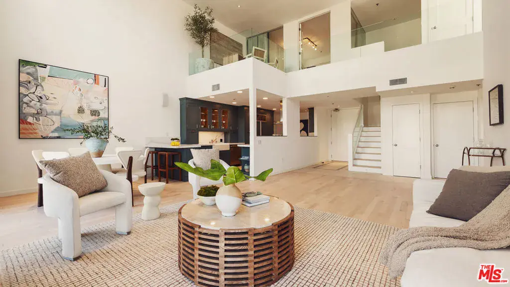 Premier penthouse living just four blocks from the beach and Montana Avenue.This front-facing, two-story residence offers 3 bedrooms, 3 bathrooms, and approximately 2,243 sq ft of light-filled living space. Soaring 18-foot double-height windows and French doors open to a private balcony, creating seamless indoor-outdoor flow. The open-concept living and dining areas connect to a sleek chef’s kitchen with top-tier appliances and modern finishes. The main-level primary suite features a custom walk-in closet and spa-inspired bath with soaking tub, separate shower, and dual vanity. A private side patio offers an additional outdoor retreat. A versatile loft and two ensuite bedrooms provide flexible living and privacy. Glass railings enhance the bright, contemporary feel throughout. The showstopper: an expansive, exclusive rooftop deck, remarkably private and ideal for entertaining or sunset lounging. Additional highlights include a dedicated laundry room, multiple storage spaces, and three side-by-side parking spots. A rare penthouse opportunity in one of Santa Monica’s most coveted locations.