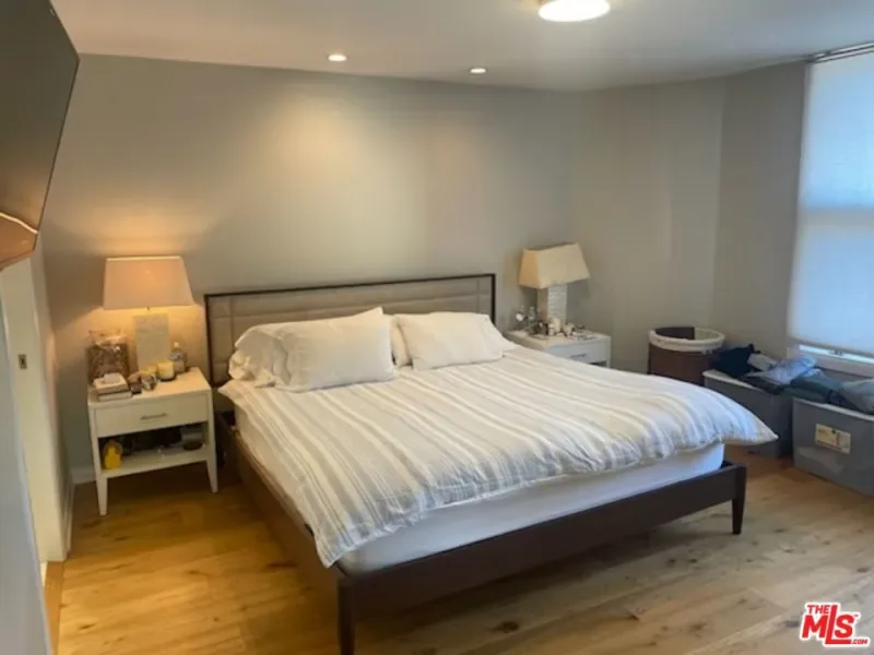 Inviting 3+2.5 townhome in ideal Santa Monica location. Spacious light & bright unit in a 4 unit complex with hardwood throughout, remodeled kitchen (with dishes and silverware) & dining (with table & chairs) that both have access to large balcony (with Grill). Powder room off large living room that is equipped with couch, TV, shelving and office area with desk. A private 2 car garage w/ direct access. 3 Bedrooms up with large primary (furnished with Bed, end tables and mounted TV). It features a lovely remodeled & bright primary bath. 2 Guest bedrooms, each have beds, end table and dresser and desk if needed. Beautiful rooftop deck (the length of the unit) with patio furniture and panoramic city views. Laundry room upstairs with sink. 1/2 block to Whole Foods, Trader Joes and great restaurants. Looking for 1 year lease.