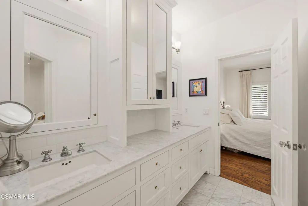 Tucked within a beautifully maintained building in one of Santa Monica’s most desirable neighborhoods, north of Wilshire Blvd, this bright and private corner unit two bedroom, single-level condo offers an exceptional blend of indoor-outdoor living and walkable Westside convenience. A standout feature are the two expansive private patio spaces–among the largest offered in the area– creating a rare extension of the home perfect for entertaining, dining al fresco, morning coffee, or simply enjoying the coastal breeze. Inside, the thoughtfully designed open floorplan is filled with natural light and features warm wood floors, fresh paint, recessed lighting, built-in cabinetry, and seamless flow between the spacious living room, dining area, and kitchen. The inviting living room is anchored by a cozy gas fireplace, while the kitchen offers timeless style with white cabinetry, granite countertops, and newer appliances, including a gas range, microwave, dishwasher, and refrigerator, plus a sunny eat-in area. The primary suite includes an updated ensuite bathroom with dual vanity & marble countertops, a large tub and separate shower with marble & subway tile surround, and a walk-in closet, while the second bedroom and bathroom offer flexibility for guests, office space, or family living. Features include central HVAC, recessed lighting, plantation shutters, crown molding, inside laundry & freshly painted exterior. Additional conveniences include two side by side parking spaces in the community garage with direct elevator access to the unit floor–no stairs required, as well as a personal storage area. Located just moments from the boutiques and dining along trendy Montana Avenue, the Farmers Market, Third Street Promenade & the iconic Santa Monica Pier, and only 8 blocks to Palisades Park and the beach, this home presents a rare opportunity to enjoy privacy, oversized outdoor space, and the best of Santa Monica living.