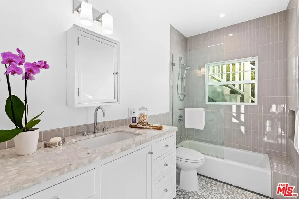 Stunning Mid-Century luxury building renovated to perfection. Light and bright with lots of new windows and located North of Wilshire, this beautiful large unit features hardwood floors, custom tile and cabinetry work. The spectacular kitchen includes stone counters, Bertazonni stove/oven, Fisher Paykel refrigerator and Bosch dishwasher. Everything is new including the mini-split for heat and air conditioning plus the stacking in unit washer/dryer. One enclosed garage space is provided. Enjoy the shared garden area with fountain and large patio from your back door. This is a must see! Easy access to everything in Santa Monica including the coveted Montana Ave for coffee, dining and shopping.