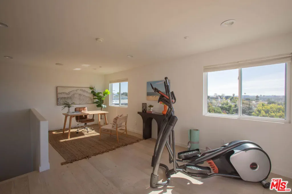 Perched near the crest of one of Santa Monica’s highest natural elevations, this top-floor penthouse in the coveted Sunset Park neighborhood captures sweeping ocean, mountain, and city views from nearly every window. With no neighboring buildings intruding on your sightlines, the home enjoys an extraordinary sense of openness, light, and privacyoffering panoramic vistas that stretch across the coastline and treetops, with stunning views from Palos Verdes to Catalina!Spanning approximately 2,200+ square feet, this 2-bedroom, 2-bath residence with a spacious loft is defined by soaring scale and architectural character. The main living level is crowned by dramatic vaulted ceilings rising to approximately 1617 feet, amplifying natural light and enhancing the home’s airy, coastal feel. Expansive windows frame views in multiple directions, creating a seamless connection between indoors and the surrounding landscape.The open-concept living and dining areas flow effortlessly into a beautifully appointed kitchen featuring marble countertops, custom cabinetry, and high-end stainless steel appliancesperfectly suited for both intimate dinners and lively gatherings. A balcony off the living room extends the living space outdoors, offering yet another setting to relax and take in the ocean breeze.The generous loftopen to the main living areaprovides flexible space ideal for a home office, gym, media lounge, or guest retreat. (Unlike some neighboring units, the loft has not been converted into an additional bedroom, preserving its dramatic volume and architectural openness.) From the loft, step out onto a private rooftop deck with breathtaking ocean and city viewsan exceptional perch for sunset entertaining or peaceful mornings above the treetops.The serene primary suite enjoys beautiful mountain and city vistas, along with a spa-inspired en-suite bath and ample closet space. A well-proportioned second bedroom and full bath complete the main level.Additional highlights include wide-plank white oak flooring, recessed and in-ceiling lighting, new in-unit laundry, air conditioning, secure elevator access just steps to unit, a private two-car garage with storage in a gated subterranean area, generous guest parking, intercom entry, and low HOA dues that include earthquake insurance.Ideally located near the infamous “Dough Row” along with the shops and cafes of Ocean Park, Main Street, and just blocks from the beach, this rare penthouse offers the perfect blend of elevation, privacy, architectural drama, and iconic coastal viewsan exceptional opportunity to experience the very best of Los Angeles coastal living.