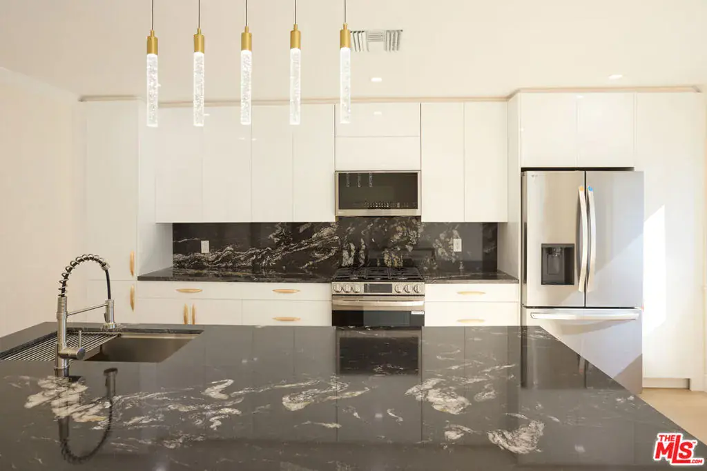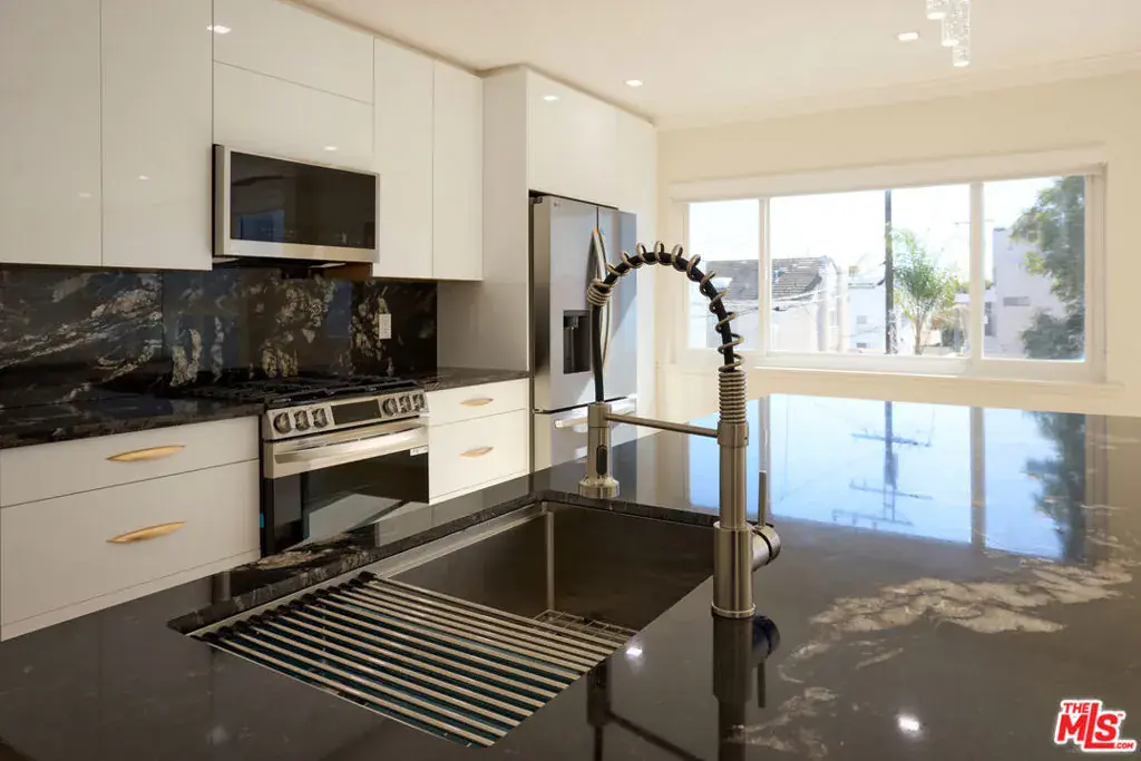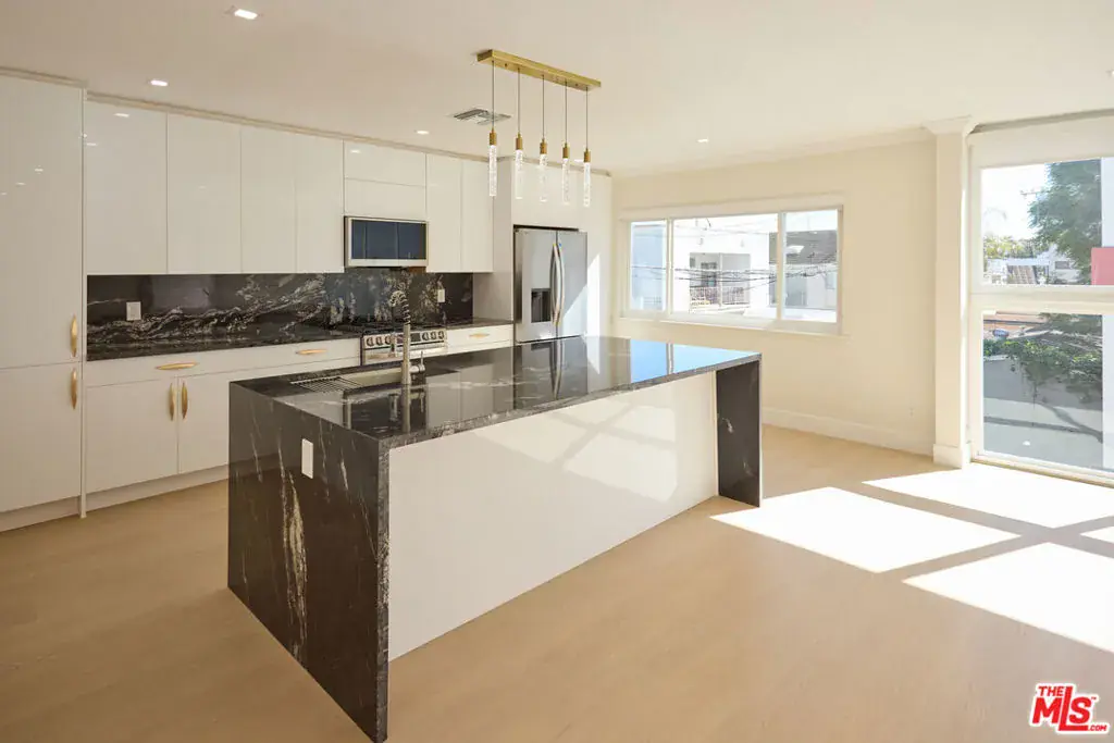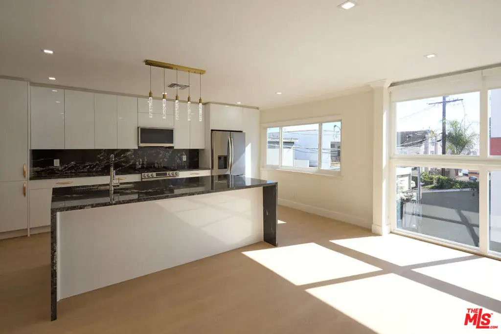 Modern and secure, this newly renovated 2-bedroom, 2-bath apartment features an exceptionally sunny southern exposure. The kitchen has all newer modern appliances, a new washer-dryer, and wood flooring. The primary bedroom has an en-suite bathroom. Located just off Wilshire, the apartment is around the corner from Trader Joe’s, less than 500 feet from Whole Foods, and just a few blocks from your morning smoothie at Erewhon. Easy access to UCLA’s Santa Monica Medical Center and Providence Saint John Health Center, as well as the beach and all that the west side has to offer. One parking space is provided behind the building.