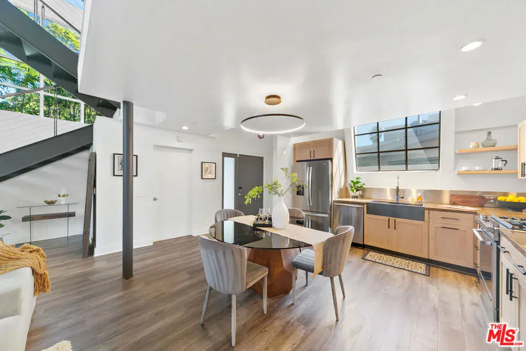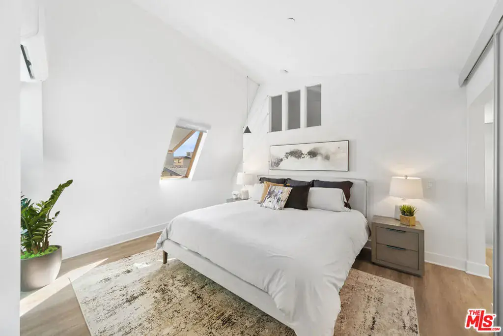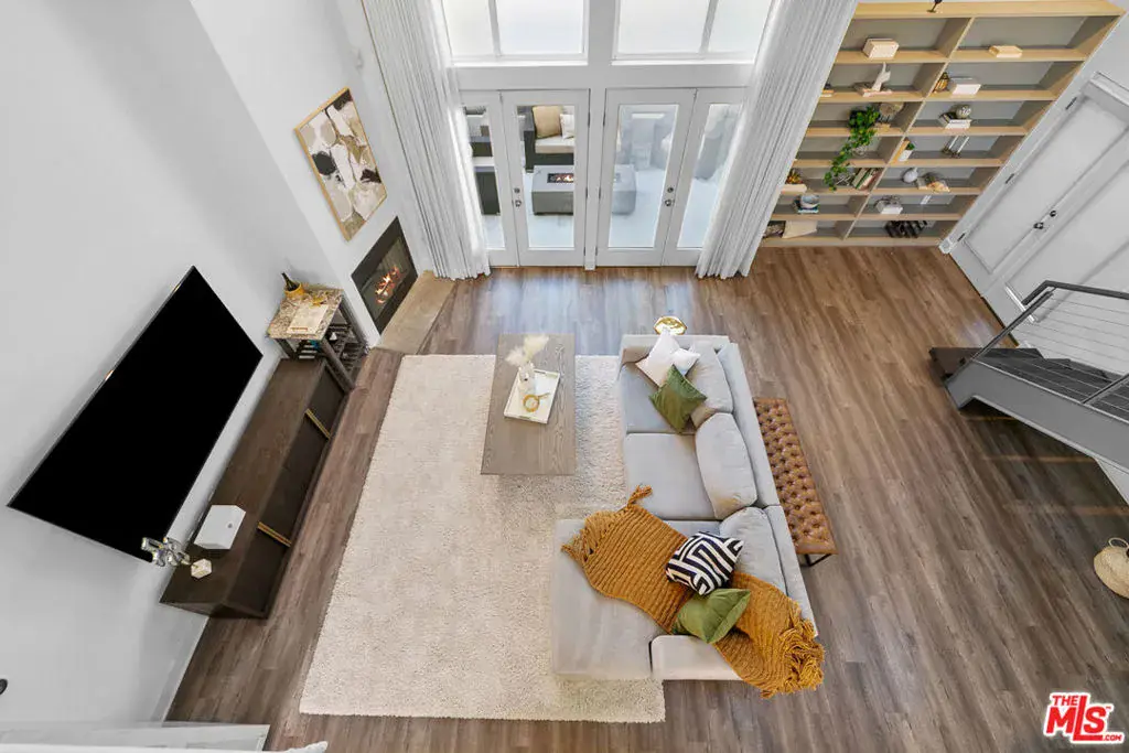 Offering an open and spacious, naturally light filled architectural townhouse for absolute live-in comfort. Open floor plan with high ceilings and floor-to-ceiling windows. Gourmet kitchen with stainless steel appliances and distinctive wood cabinetry. Open floating mezzanine that can be utilized as an office area. Indoor laundry with stackable washer/dryer. French doors with remote controlled curtains that open up to a private patio. Underground two single-parking spaces in gated community garage with an EV charging unit. Walk to WholeFoods, Trader Joes, restaurants, and shops. Feel the calm and comfort of home with beautiful and extraordinary architecture in the bustling life of Santa Monica!