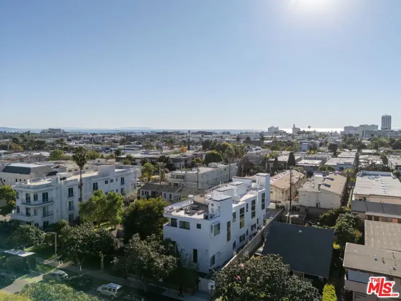 Welcome to a thoughtfully crafted, architect-designed modern residence in a boutique five-unit building completed in 2022. This home blends clean contemporary design with soaring ceilings, walls of glass, and an airy open-concept layout filled with natural light. The interiors feature a refined mix of concrete and hardwood flooring, a sleek designer kitchen with premium appliances, and curated finishes that feel both warm and modern. A light-filled skylight room adds architectural interest and flexibility ideal as a home office, creative studio, or serene retreat. The layout offers distinct yet connected living and entertaining spaces, while a private rooftop deck captures city views with an ocean backdrop perfect for sunset lounging or casual gatherings. Additional amenities include central HVAC, in-unit laundry, secure subterranean parking, and solar panels supporting energy-efficient living. Ideally located just minutes from Wilshire Boulevard, the beach, top dining, and everyday conveniences, this residence delivers a relaxed yet refined Santa Monica lifestyle with timeless architectural appeal.