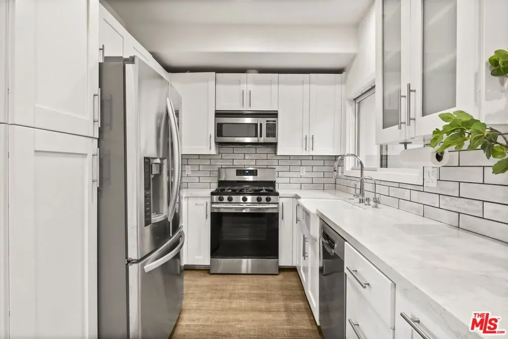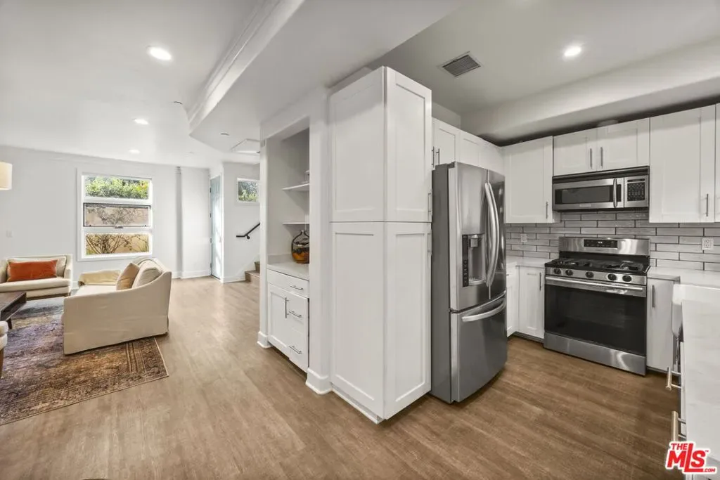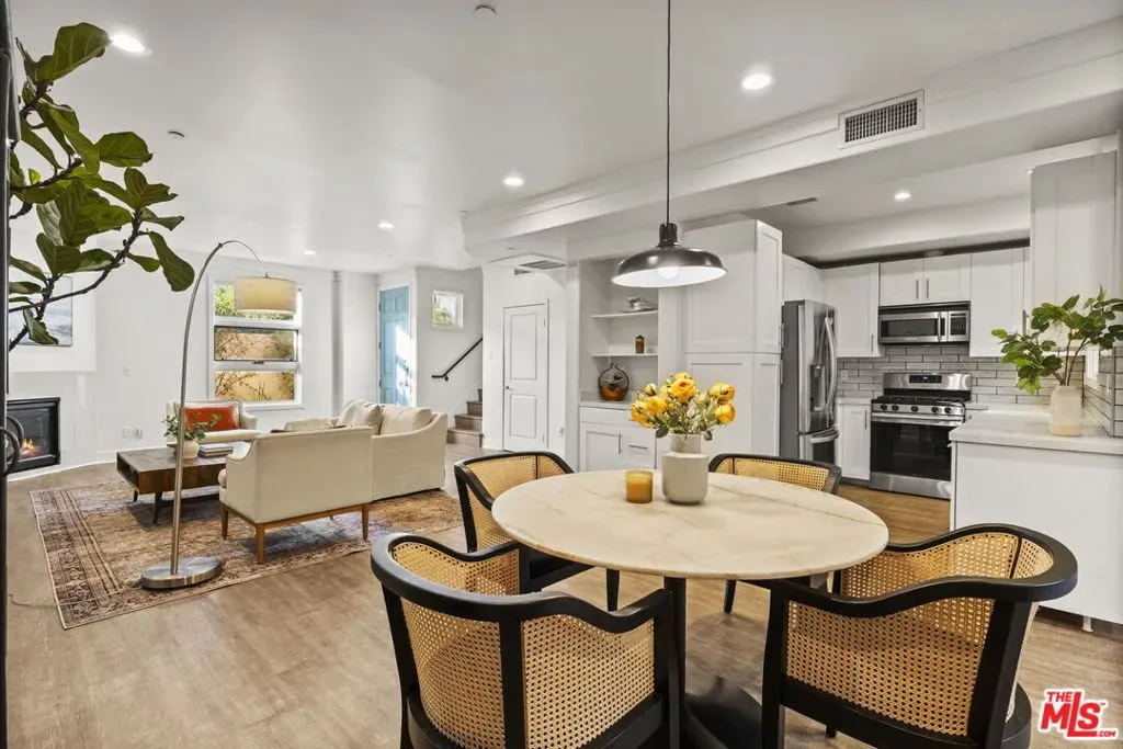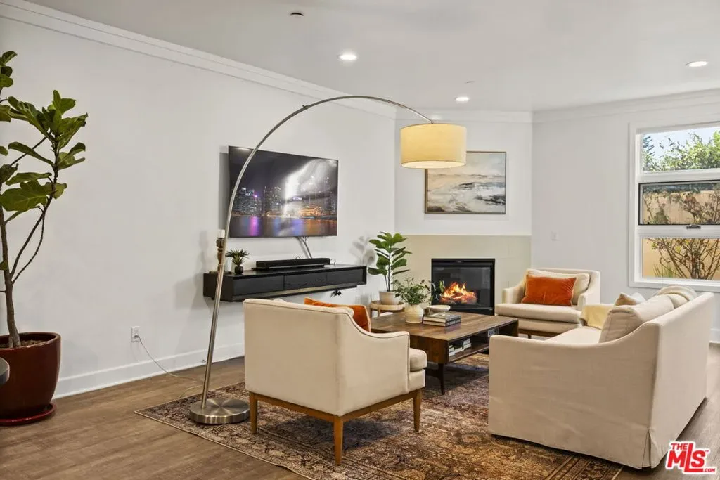 Welcome home to this beautifully updated two-bedroom townhouse, just half a block south of Wilshire Boulevard and within close proximity to top-rated schools, vibrant cafes, and the best of Santa Monica’s amenities. Located in a contemporary, five-unit building, this home offers both privacy and community. A gated entry leads you to your front door, where you’re greeted by a generous, open-concept living area. High ceilings and a charming gas fireplace, seamlessly flow into the dining and kitchen areas, creating a perfect space for living and entertaining. The kitchen has been thoughtfully updated, with classic finishes and modern touches including a custom built bar area (can be converted back to a wet bar). There is a private patio just beyond the dining area perfect for a little al fresco coffee, wine or barbecue. Upstairs, both spacious bedrooms come with ensuite bathrooms and private balconies, ensuring cooling breezes throughout the year. The stackable laundry machines are conveniently positioned on the same level as the bedrooms. The third story loft adds even more versatility, offering the option of a third bedroom or a dedicated office with its own closet. From this vantage point, you access the lovely roof top deck, an idyllic spot to watch the sunset and enjoy the view of the Santa Monica Mountains. Additional highlights include a private two car garage with direct access to the unit, as well as 240v electric car charging. Several new custom windows were just installed, fresh paint, the roof and balcony deck surfaces were recently replaced, newly updated lighting, as well as new bathroom and door hardware were installed throughout the unit. Fantastic opportunity for Westside living!
