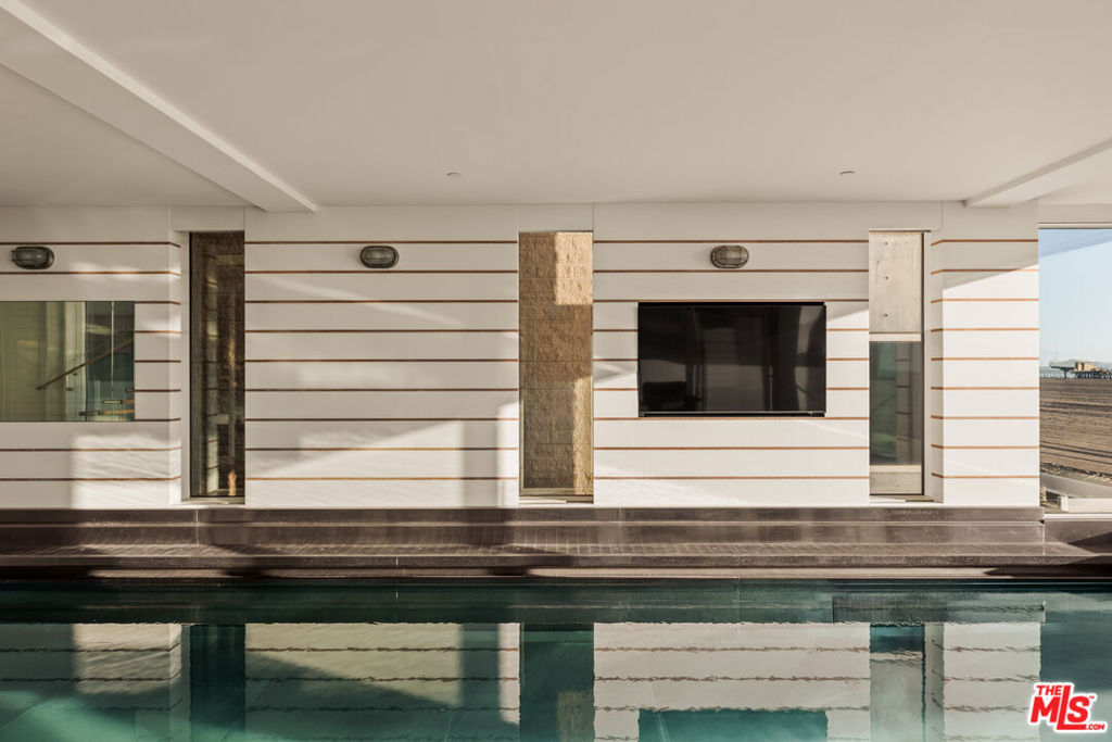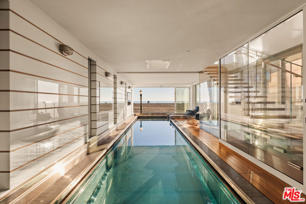 Step inside Monolith, sets on the sand along one of Santa Monica’s most coveted stretches of coastline. This extraordinary beachfront residence represents the pinnacle of modern coastal luxury. Conceived and meticulously crafted the four-story architectural masterpiece was completed in 2018 and showcases uncompromising quality, innovation, and craftsmanship throughout. Behind gates ensuring complete privacy and security, the home offers sweeping, unobstructed ocean views from every level. At its core is a striking indoor heated stainless-steel pool, complemented by a spa and a whole-house purified, chemical-free water system extending to every tap. Rich teak flooring flows seamlessly across the interiors, while a private four-story elevator provides effortless access to all floors.Designed equally for refined living and grand entertaining, the residence features a state-of-the-art media living room with an oversized projector, MartinLogan professional sound system, a viewing balcony overlooking the Pacific, and a custom Philippe Starck sofa. Invisible, built-in surround sound speakers on every level deliver an immersive audio experience throughout the home. The sleek kitchen is outfitted with top-tier Miele and Gaggenau appliances, blending European design with professional-grade performance.The penthouse primary suite is a private sanctuary, complete with a spacious covered oceanfront deck and an expansive walk-in closet. Below, a 1,000-square-foot subterranean garage features a turntable for effortless vehicle maneuveringan uncommon luxury even among the finest coastal estates.World-class dining, boutiques, and the iconic 3rd Street Promenade are just moments away. Rarely does a home combine beachfront immediacy, architectural pedigree, and cutting-edge luxury with such precision this is Santa Monica living at its absolute finest.