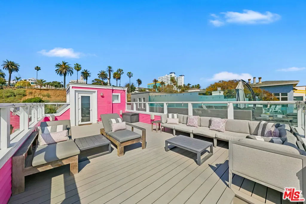 Widely known as the “Barbie House,” this iconic oceanfront residence offers a rare opportunity to live directly on the sand along Santa Monica’s prestigious Palisades Beach Road. With uninterrupted Pacific Ocean views from all three levels, the home blends bold architectural personality with effortless coastal living. Floor-to-ceiling glass captures sweeping whitewater views, the Santa Monica Pier, and spectacular sunsets, while private terraces on every level extend the living experience outdoors. A rooftop deck showcases panoramic coastline vistas, creating an extraordinary setting above the beach. The primary suite serves as a serene retreat with its own ocean-facing terrace and spa-inspired bath. Additional en-suite bedrooms offer comfort and privacy, while the open great room and modern kitchen are designed for relaxed beachfront living and entertaining. Fully furnished and move-in ready, this is a unique opportunity to lease one of Santa Monica’s most recognizable and talked-about beachfront homes. Available for a 13+ month lease.