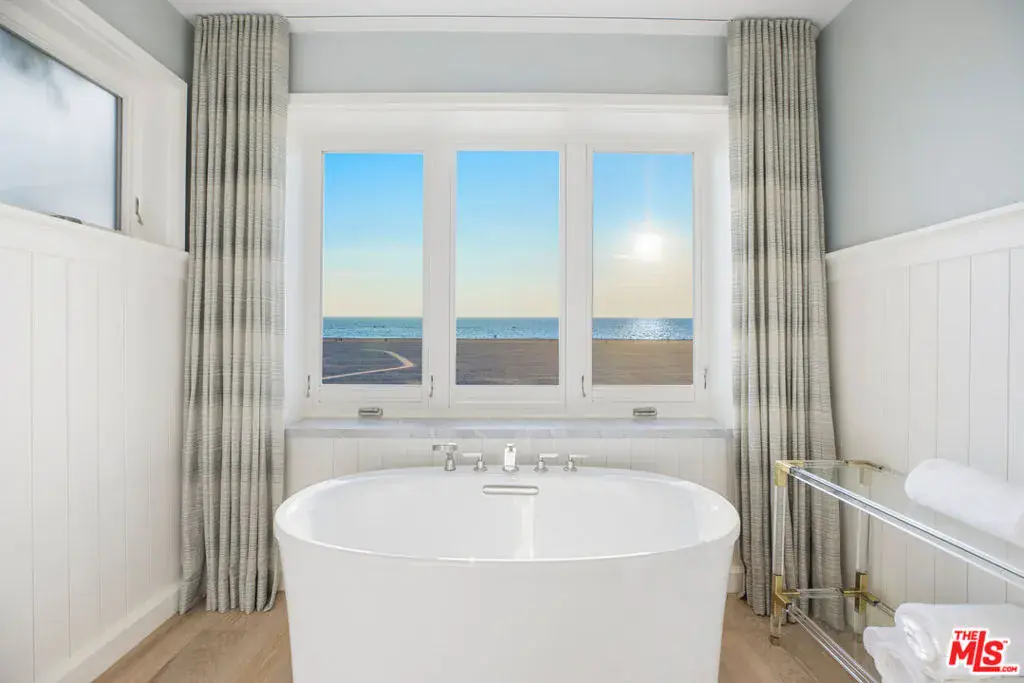 Nestled directly on the sands of Santa Monica’s prestigious Gold Coast, this rare modern-traditional masterpiece invites you to experience the very best of coastal living. Thoughtfully crafted over two years with no detail overlooked, this home blends timeless elegance with contemporary comfort, creating a warm and welcoming retreat that feels as extraordinary as its surroundings. From the moment you step inside, you’re greeted by breathtaking, uninterrupted views that stretch from the iconic Santa Monica Pier to the rugged cliffs of Malibu’s Point Dume. Sunlight streams through expansive glass walls, filling the open, airy spaces with a golden glow. The main level is designed for effortless living and entertaining, featuring a grand living room and dining area centered around a cozy fireplace, and a chef’s kitchen that’s as functional as it is beautiful. Slide open the glass doors to a covered veranda with built-in heaters, the perfect spot to sip your morning coffee or unwind with the soothing sound of the waves. The primary suite is a true sanctuary- a peaceful haven with its own fireplace, a private ocean-view terrace, a spa-like bath, and custom-designed closets. Three additional en-suite bedrooms provide plenty of space for family or guests, each offering comfort and privacy. For those who love to host or simply enjoy the finer things, the home’s exceptional amenities include a rooftop deck with a firepit and sweeping coastline views, a lower-level family room that opens to a serene beachside patio with a spa, a library with custom built-ins, and a state-of-the-art media room. Every detail in this home has been carefully chosen, from the wide-plank oak floors and intricate millwork to the handcrafted steel-and-wood stair railings. Practical features like a 3-car garage and parking for up to six additional vehicles ensure convenience matches the luxury. And the location? It doesn’t get better. You’re just steps from Santa Monica’s world-class dining, shopping, and entertainment on Ocean Avenue and the 3rd Street Promenade. Here, every sunset feels like it’s painted just for you, a daily reminder that this is more than a home, it’s a lifestyle. Don’t just live by the ocean. Live with it.