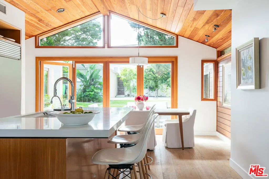 This exquisitely remodeled, quintessentially California bungalow sits perched above the Penmar Golf Course, on one of the best streets in Sunset Park, with tree top views that stretch from Santa Monica to Playa Vista and the LMU Bluff. This special home features an inviting floor plan that takes advantage of the over 7,000 square foot lot. The lush front yard features mature fruit trees and soaks up the Southern California sun, while leading you up steps to the front entrance of the home. Gentle ocean breezes lead you from the front balcony that takes in the South-facing view, through a set of French Doors and into the cozy living room where you’ll find a fireplace and a projector with surround sound and a drop down screen. The living room opens to the stunning kitchen, highlighted by vaulted wood paneled ceilings, sliding La Cantina doors, custom cabinetry, a Wolf range, and a Sub Zero fridge. The sliding doors open entirely onto a spacious deck that flows effortlessly to the oversized backyard, shaded with mature trees and ending at a small sport court perfect for practicing your free throws. The primary suite is a serene space with sliding doors that open to the backyard, custom built in closets, and a beautifully designed bathroom. The two bright guest rooms, separated by a bathroom that retains its 1940s charm with stained glass windows, completes the home. Other highlights of the property include a detached, oversized one car garage with alley access that includes a laundry area and can also function as an office or gym, a water filtration system in the kitchen, central air and heat, and custom shades. A home like this rarely comes available for rent – it’s not one you want to miss!
