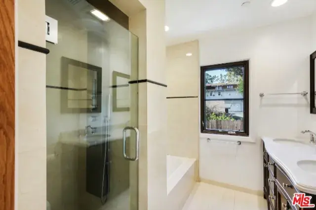 Custom Complete Rebuilt Home in Santa Monica. Located in one of the most sought-after streets in Sunset Park. This is a great house for entertaining with its open and expansive floor plan and approx. 8500 sqft sprawling lot with fabulous views. Enormous patio deck on the upper level overlooking a lush and maniucred backyard. Large open kitchen w/ stainless steel appliances, granite counter tops and custom cabinetry that features excellent cabinet storage. Hardwood floors and recessed lights throughout. Secondary family room in the lower level w/ French doors that open to the patio and yard. Bathroom with shower and 2nd dishwasher, kitchen sink just off lower level patio for convenient cleanup of al fresco dining. Gas fireplaces on both floors. Laundry room on lower level off garage. Large 2 car private garage as well as 2 additional covered spaces + additional parking on the spacious long driveway. Currently partially furnished with 3 new beds, two new wall mounted televistions and 2 dining tables.